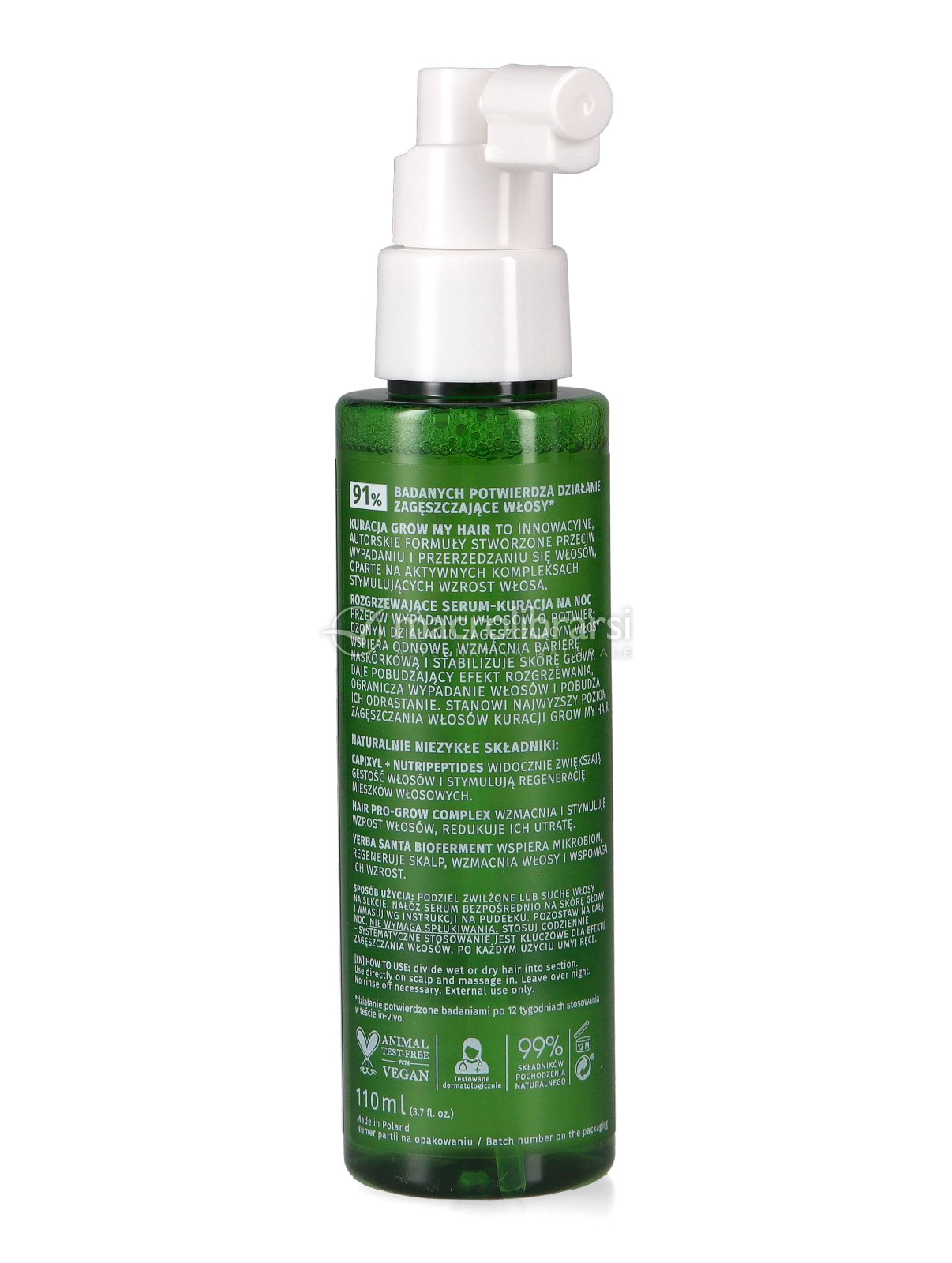 Il siero per capelli GROW my hair è un trattamento intensivo notturno che agisce sulle zone in cui i capelli ne hanno più bisogno: favorisce il rinnovamento dei follicoli piliferi, rafforza la barriera cutanea e riequilibra il cuoio capelluto.