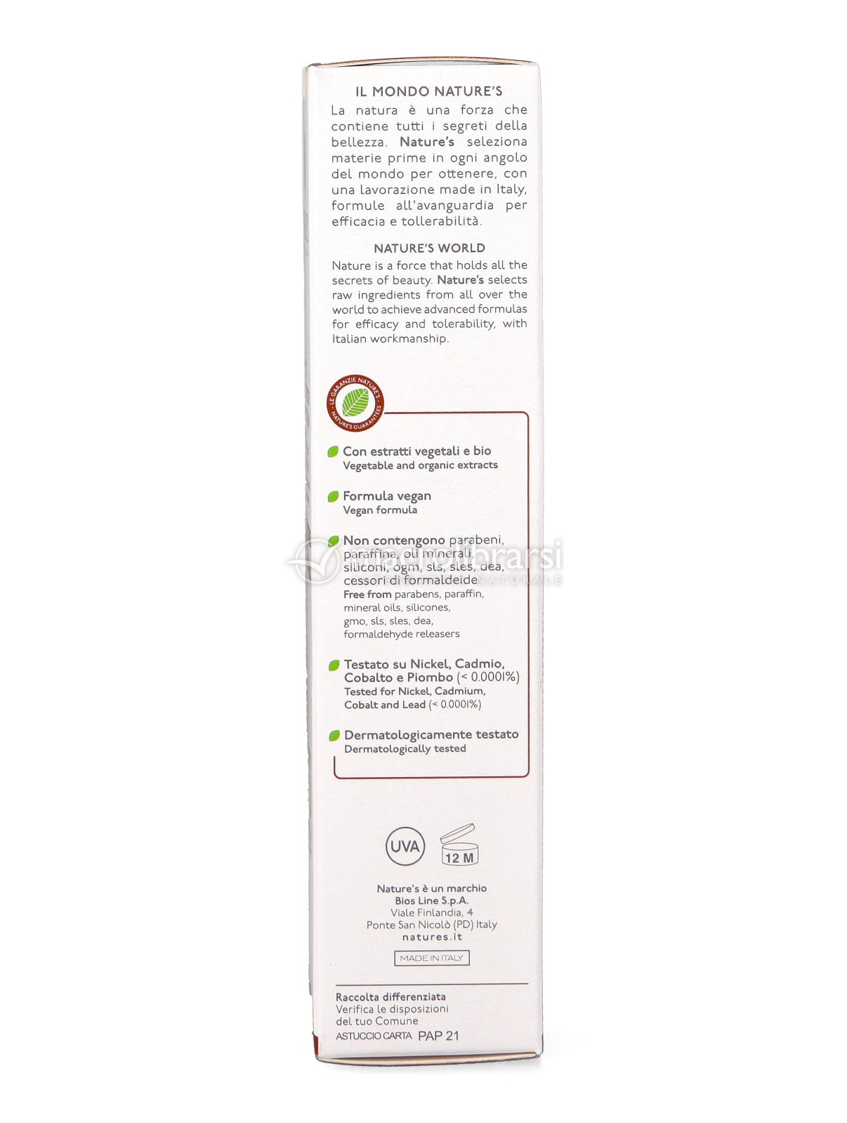 | Disclaimer | I dati riportati sulla confezione del prodotto (INCI, consigli di utilizzo, data di scadenza, certificazioni, etc) possono variare sulla base dell'aggiornamento delle formulazioni da parte dei produttori, dell'arrivo di un nuovo lotto e dell'adeguamento alle norme di legge. Vi preghiamo pertanto di fare sempre riferimento alle informazioni presenti in etichetta prima di utilizzare il prodotto acquistato. Le immagini riportate hanno uno scopo puramente indicativo e sono soggette a variazioni da parte dei produttori. |