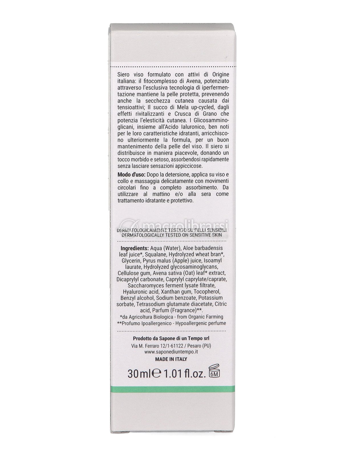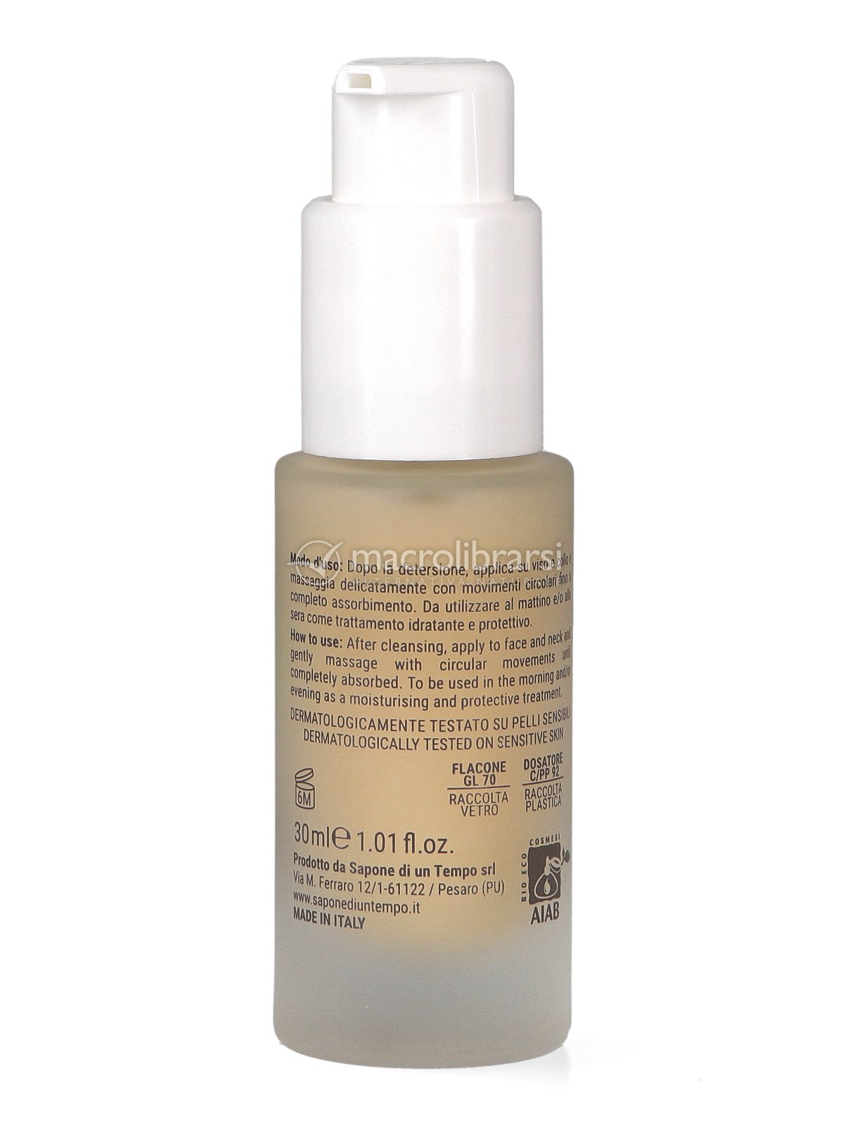 La formula del Siero Viso Bio Sapone di un Tempo aiuta a proteggere la barriera cutanea e a prevenire la sensazione di pelle che tira, anche quando è messa alla prova da detergenti e tensioattivi.