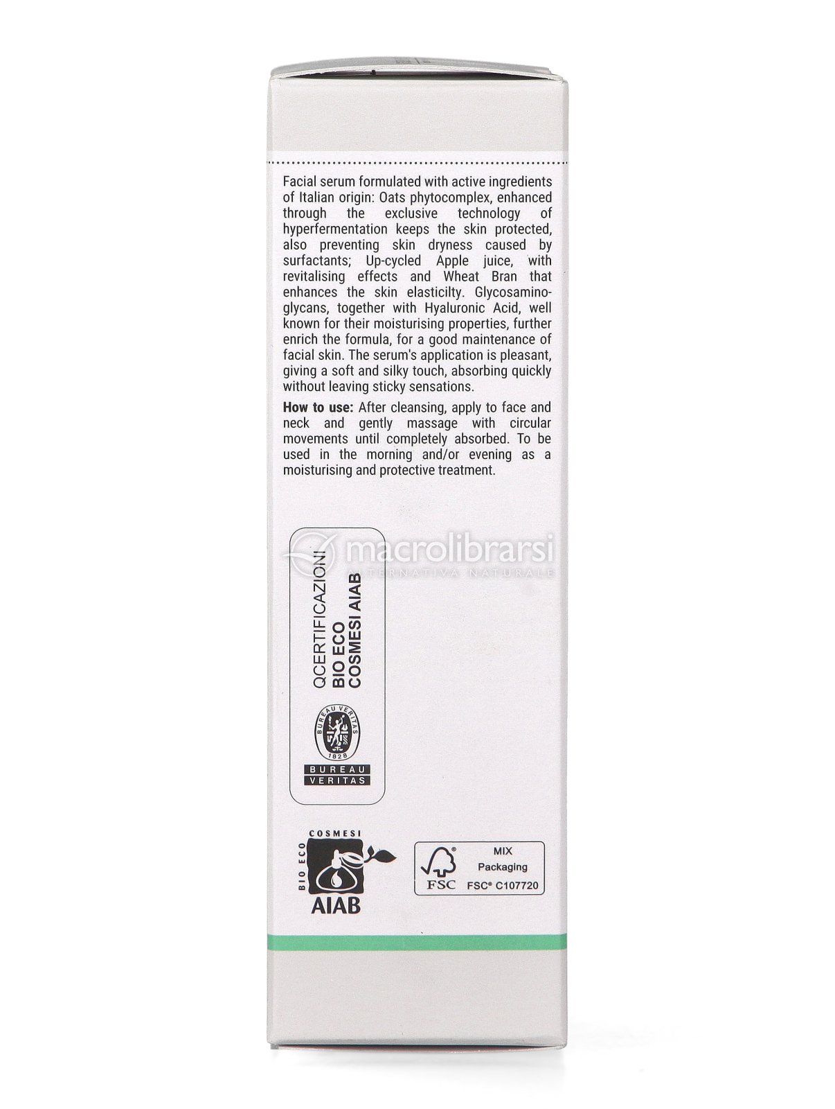 Protagonista è il fitocomplesso di Avena, potenziato attraverso un’esclusiva tecnologia di iperfermentazione, per un’azione protettiva e riequilibrante che aiuta a contrastare la secchezza cutanea. In sinergia troviamo il succo di Mela upcycled, noto per i suoi effetti rivitalizzanti, e la Crusca di Grano, ideale per sostenere elasticità e tonicità della pelle.