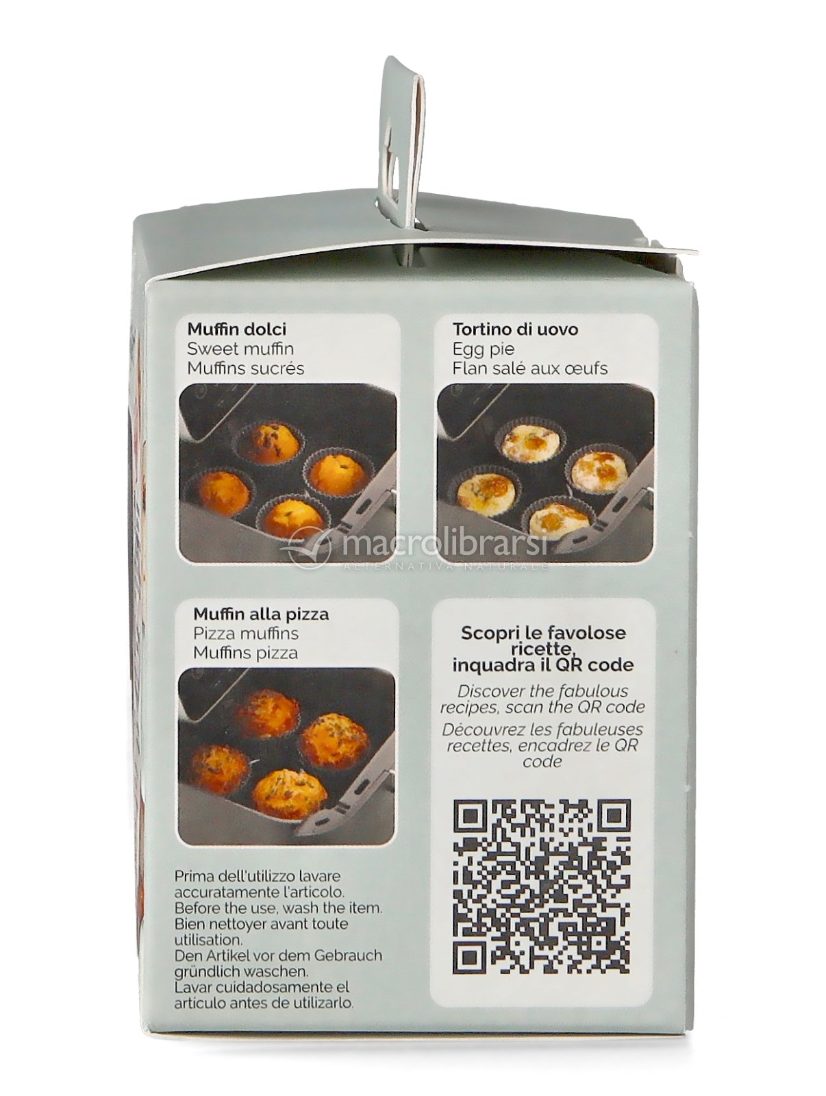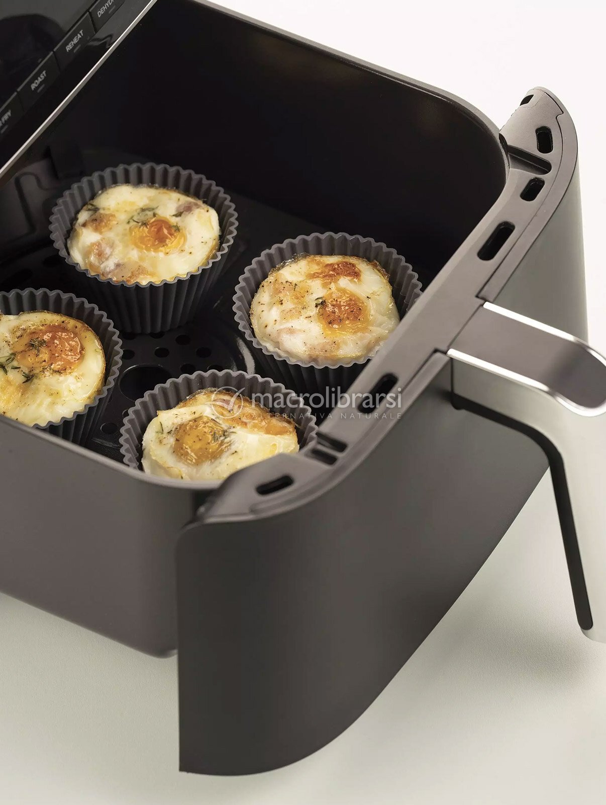 Il set Silfry Muffin comprende 6 pirottini in silicone riutilizzabili, pensati per l’uso in friggitrice ad aria e perfetti per dolce e salato: muffin, mini quiche, flan e tortini.