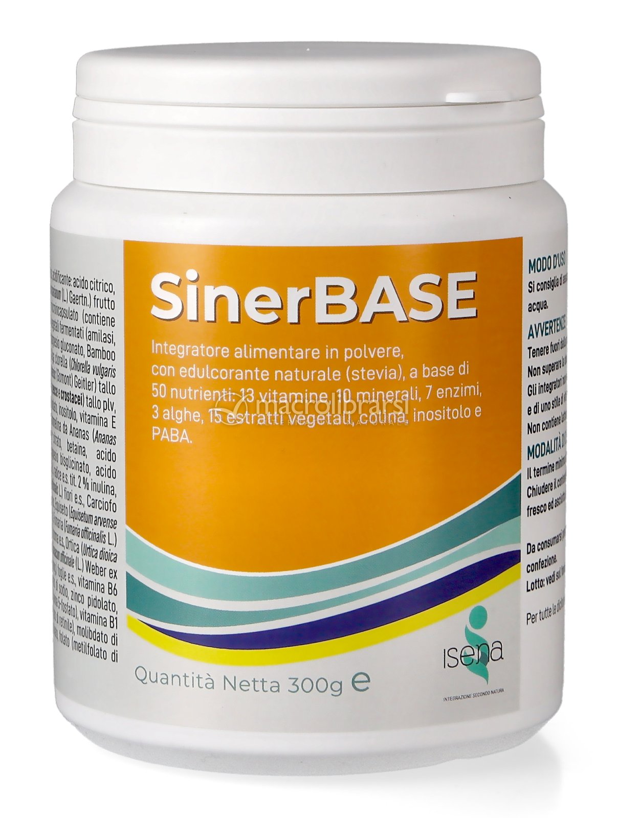SinerBASe è un integratore in polvere multivitaminico, dolcificato con stevia. Contiene 50 nutrienti fra cui: