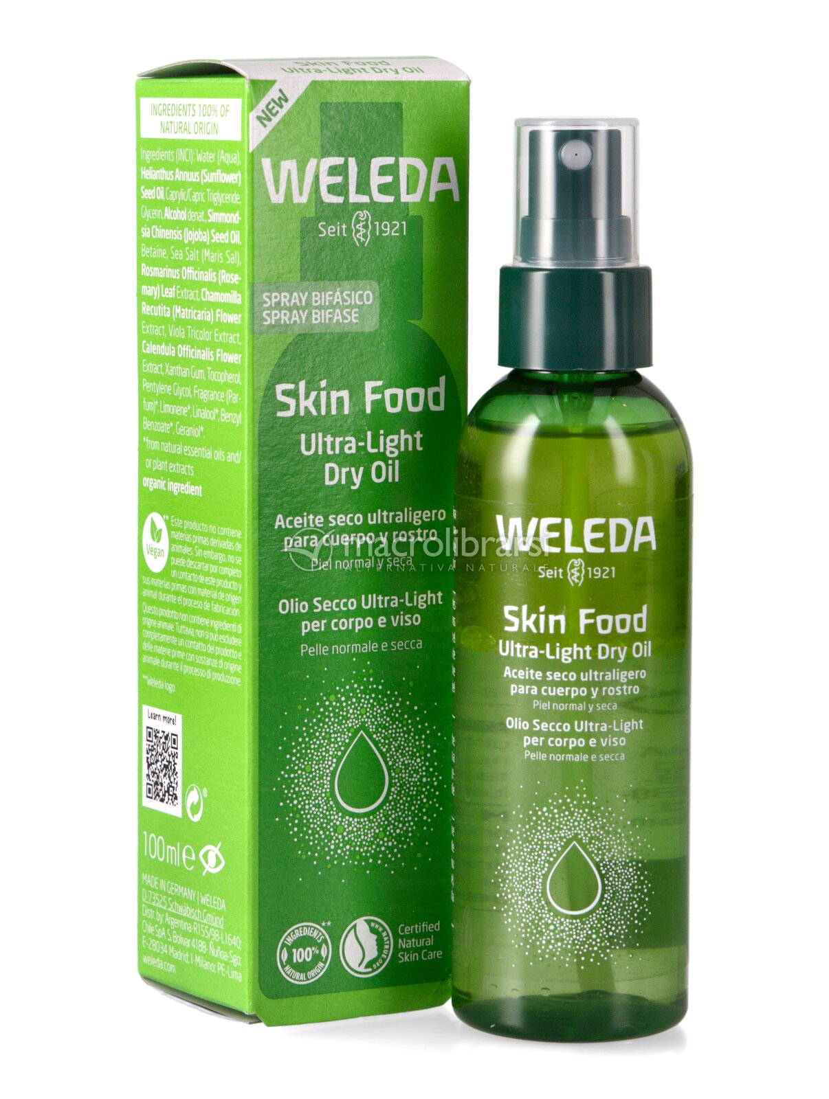 Questo leggerissimo olio bifasico della linea Skin Food di Weleda combina la leggerezza di uno spray idratante con oli vegetali nutrienti ed estratti di viola del pensiero, calendula biologica, rosmarino biologico e camomilla biologica.