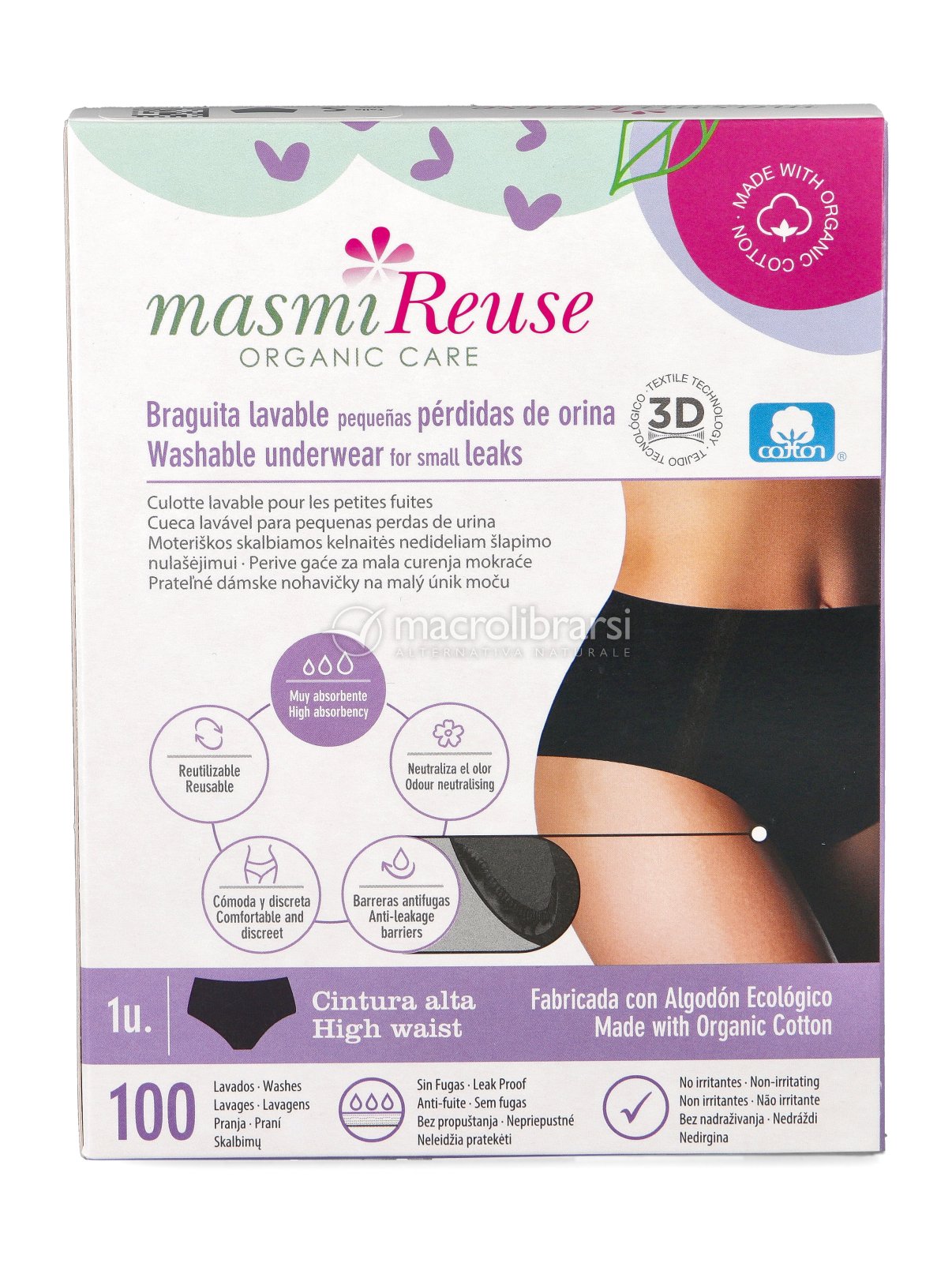 Lo slip a vita alta Masmi Reuse è una scelta ideale, sostenibile ed ecologica per garantire discrezione e comfort in caso di piccole perdite di urina.