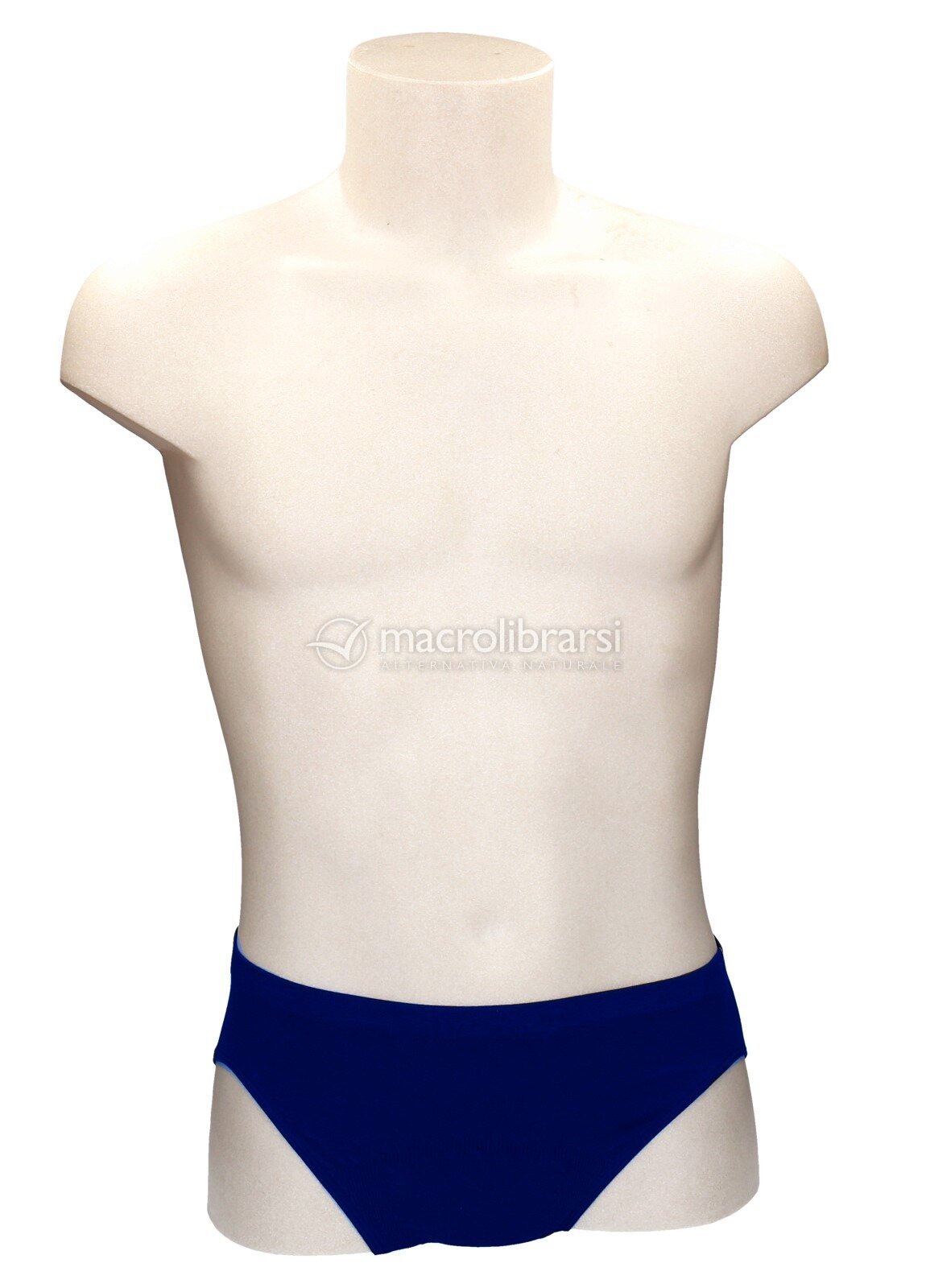 Slip uomo blu indaco in morbida fibra di bambù e fibra di ricino (biopolimero EVO), senza cuciture, dal tessuto comodo e altamente traspirante.