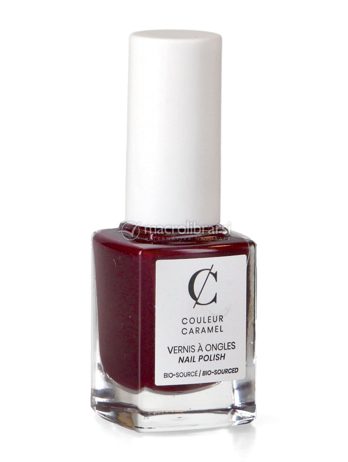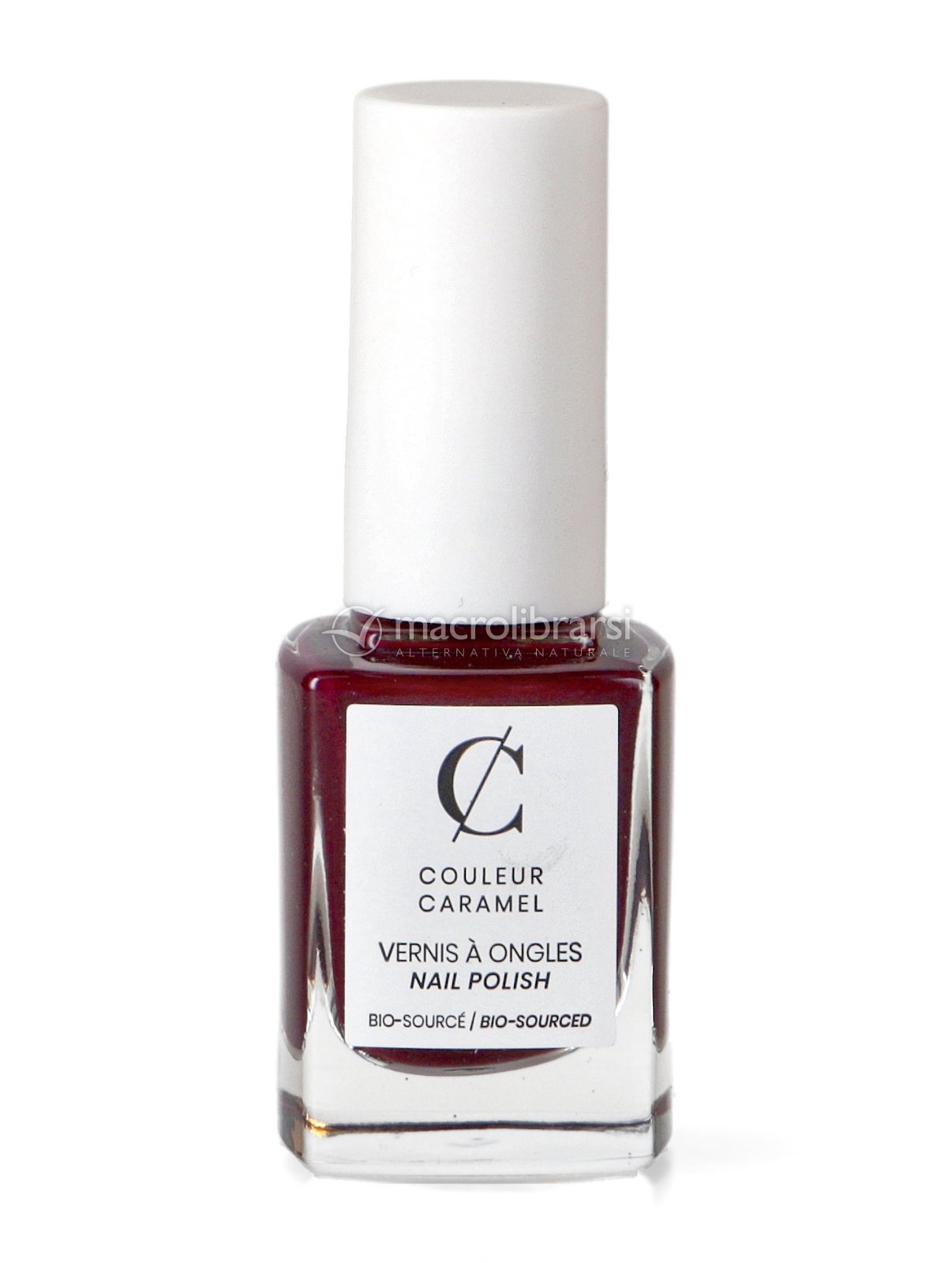 Smalto vegan Couleur Caramel n.47 Myrtille, un rosso-vinaccia facile da stendere e ad asciugatura rapida.