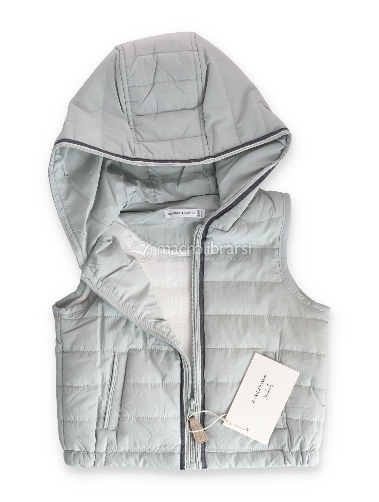 | Tessuto | Interno: 50% viscosa di bambù, 50% cotone organico; Esterno: 100% poliammide riciclata; Imbottitura: 100% poliestere riciclato |