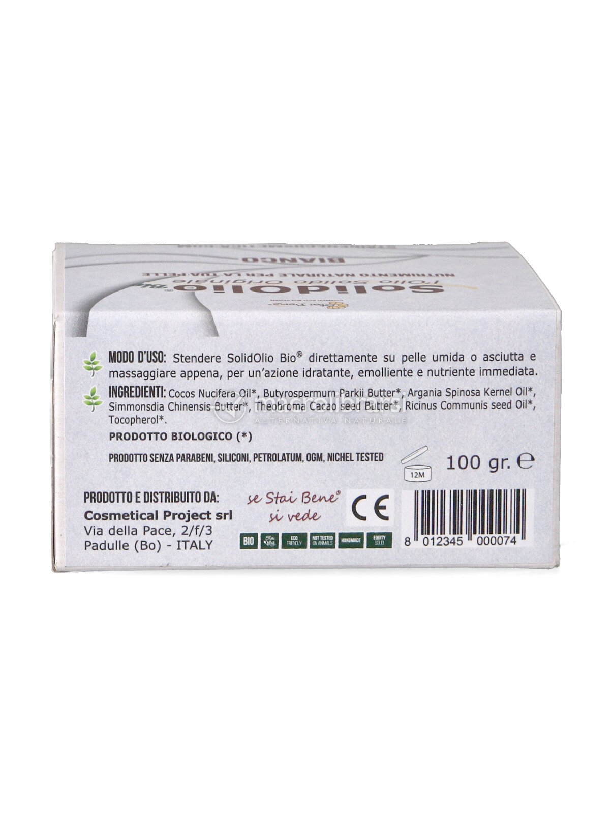 Olio Solido bio Bianco è un panetto compatto senza profumo aggiunto che elimina la secchezza della pelle restituendo idratazione ed elasticità.