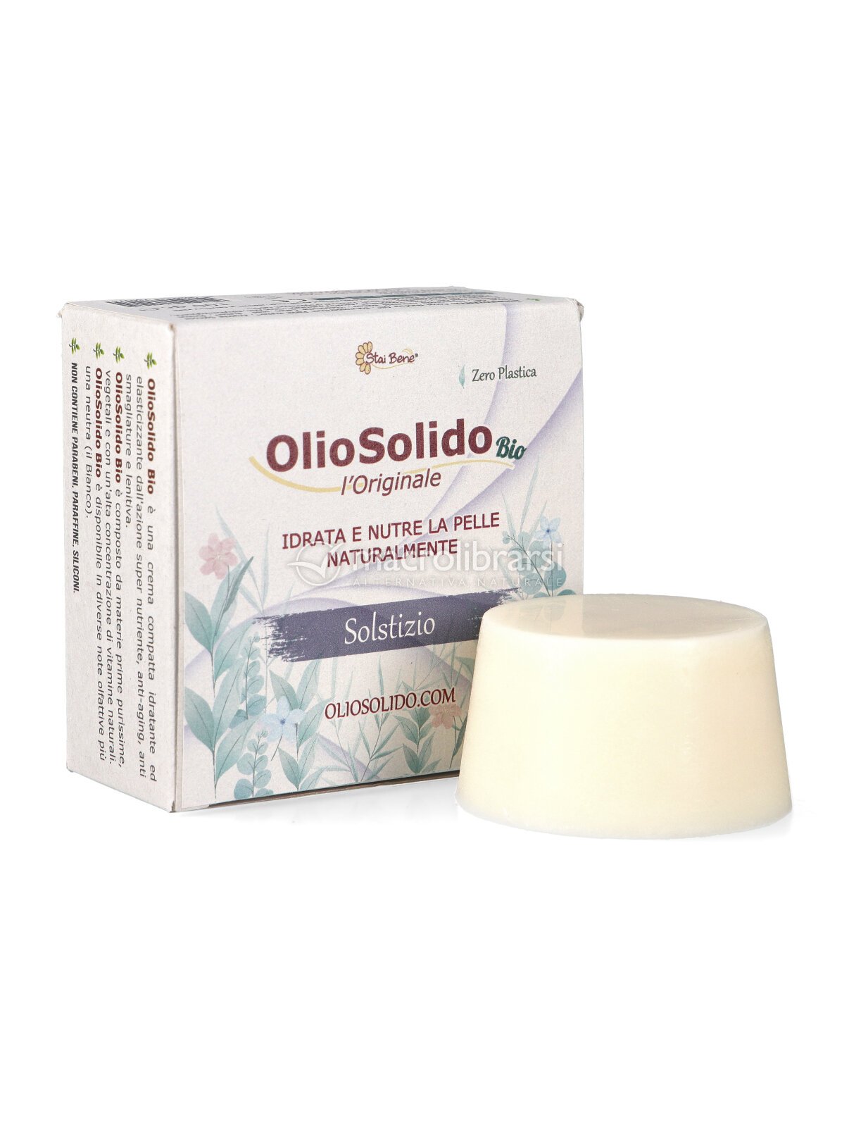 L'Olio Solido Solstizio è un panetto compatto che elimina la secchezza della pelle, restituendole un'idratazione ed elasticità mai provate, grazie ai suoi ingredienti vegetali purissimi in concentrazione massima e alle vitamine naturali contenute.