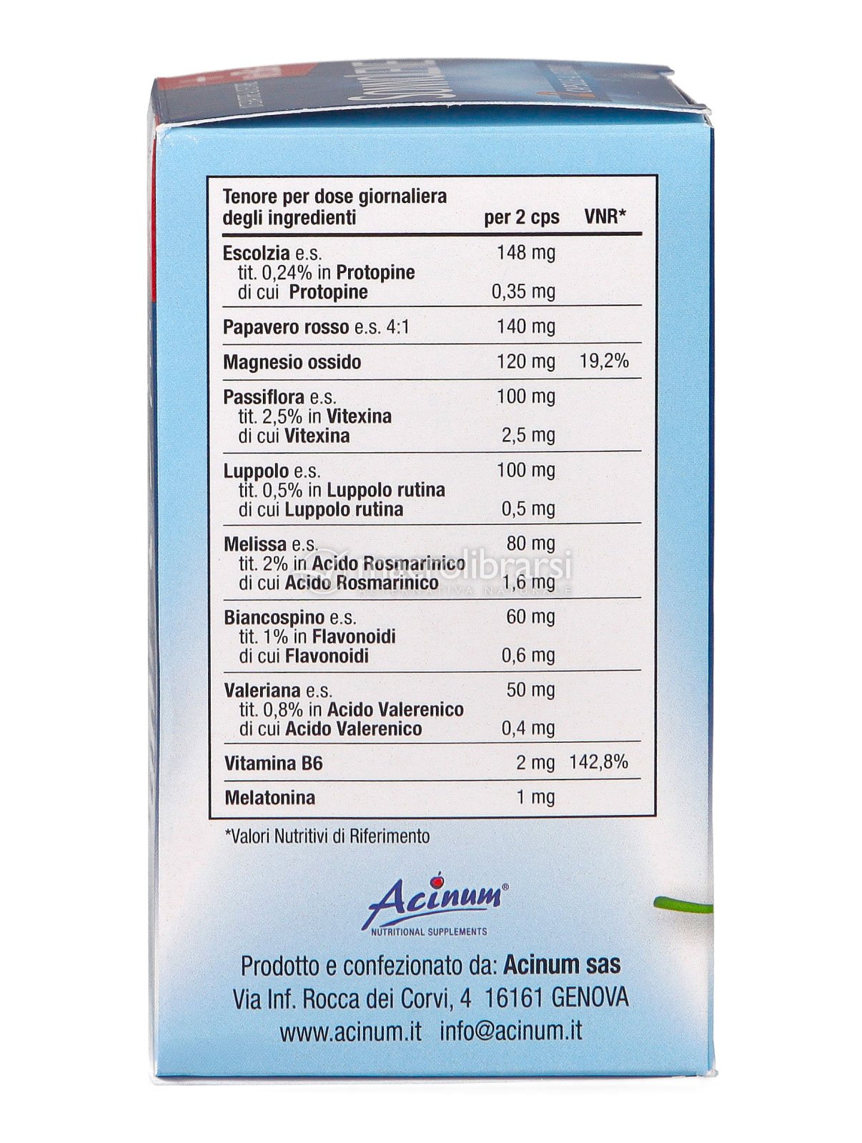 Sonnolene di Acinum è un integratore alimentare in capsule pensato per favorire il rilassamento e il sonno notturno in caso di stress.