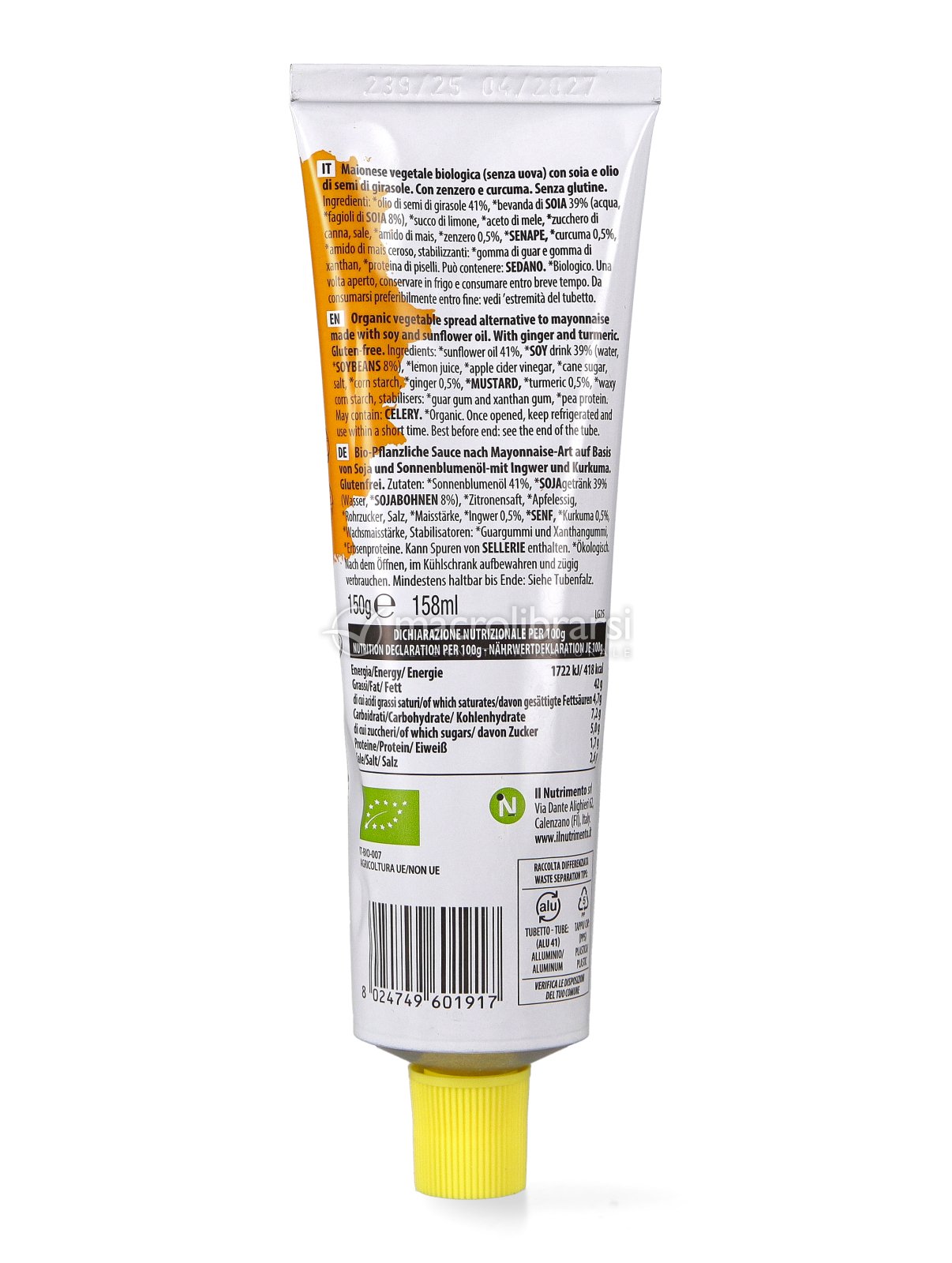 Ho acquistato questa soya maionese bio in tubetto e mi ha piacevolmente sorpresa fin dal primo assaggio.Il sapore è delicato ma allo stesso tempo ben caratterizzato,con la nota calda della curcuma e il tocco fresco e leggermente pungente dello zenzero che la rendono originale e diversa dalle classiche salse.La consistenza è cremosa,liscia e omogenea,si dosa facilmente e si amalgama bene a ogni piatto.È perfetta per panini,wrap,verdure grigliate,insalate,piatti etnici e anche come salsa di accompagnamento per patate o falafel.Apprezzo molto che sia leggera,digeribile e con ingredienti di origine vegetale,senza sapori artificiali.Il tubetto è pratico e igienico,ideale anche da portare fuori casa.Prodotto ben studiato,buono e di qualità,che unisce gusto e attenzione agli ingredienti.La ricomprerò sicuramente ?