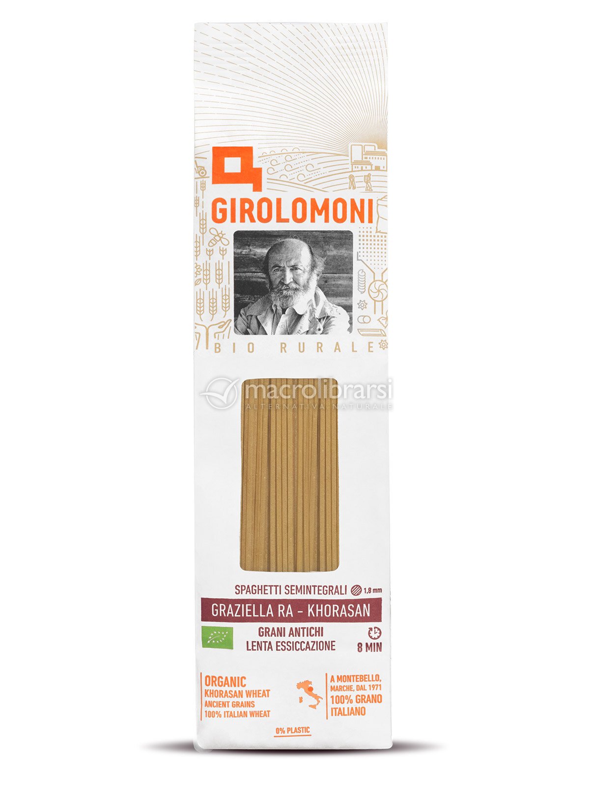 La pasta Girolomoni® prodotta col 100% di semola Graziella Ra®, è trafilata al bronzo ed essiccata a basse temperature ed in tempi molto lunghi al fine di mantenere tutti i principi nutritivi ed organolettici della materia prima anche nel prodotto finito.