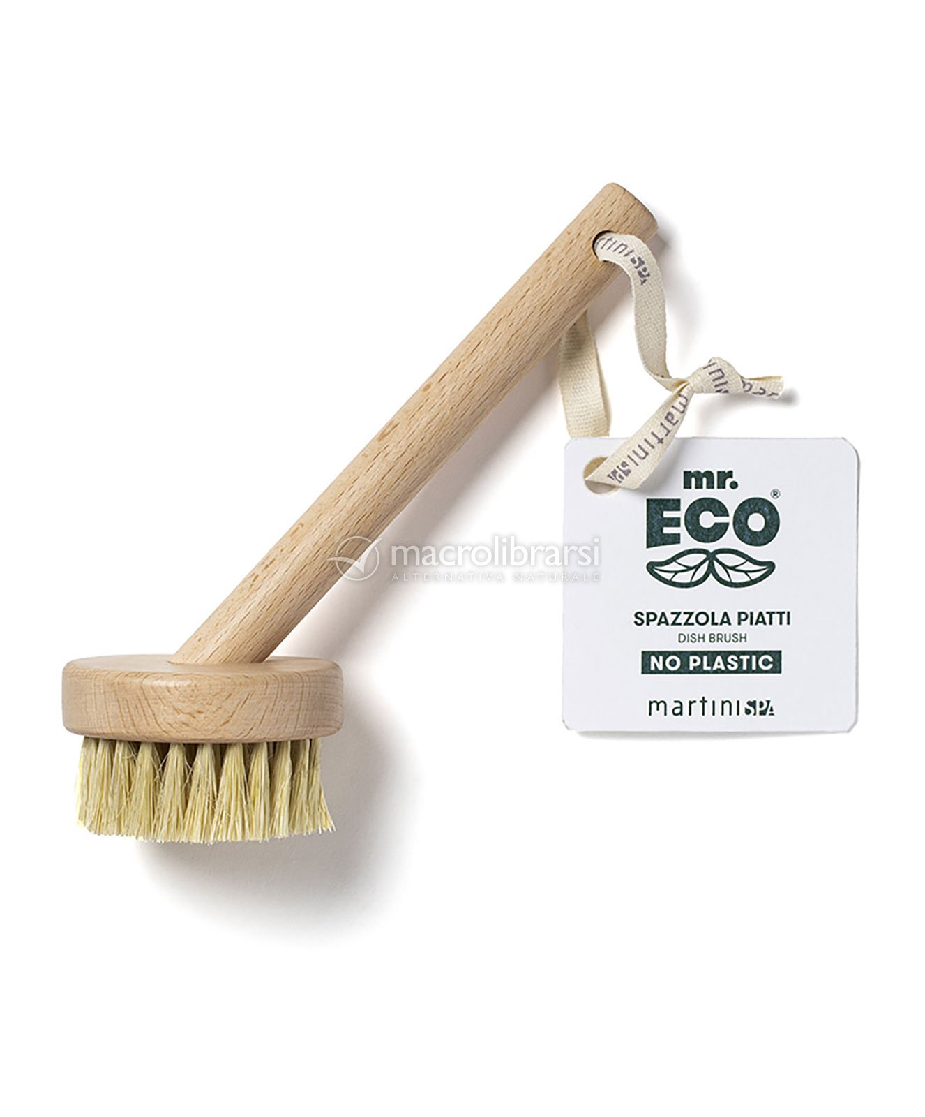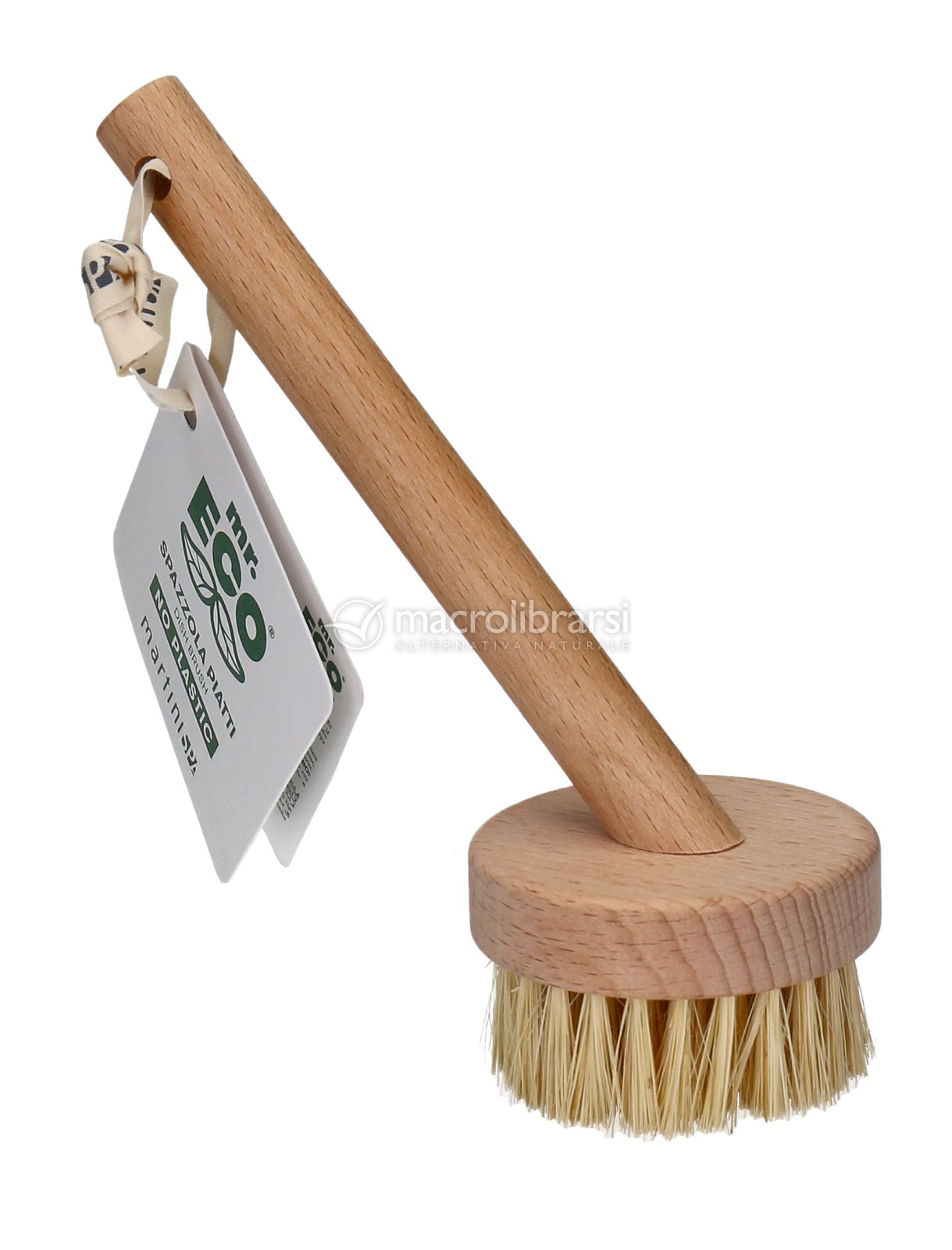 Il manico è ergonomico, in legno certificato FSC, protetto con cera naturale, e setole in Sisal naturale.