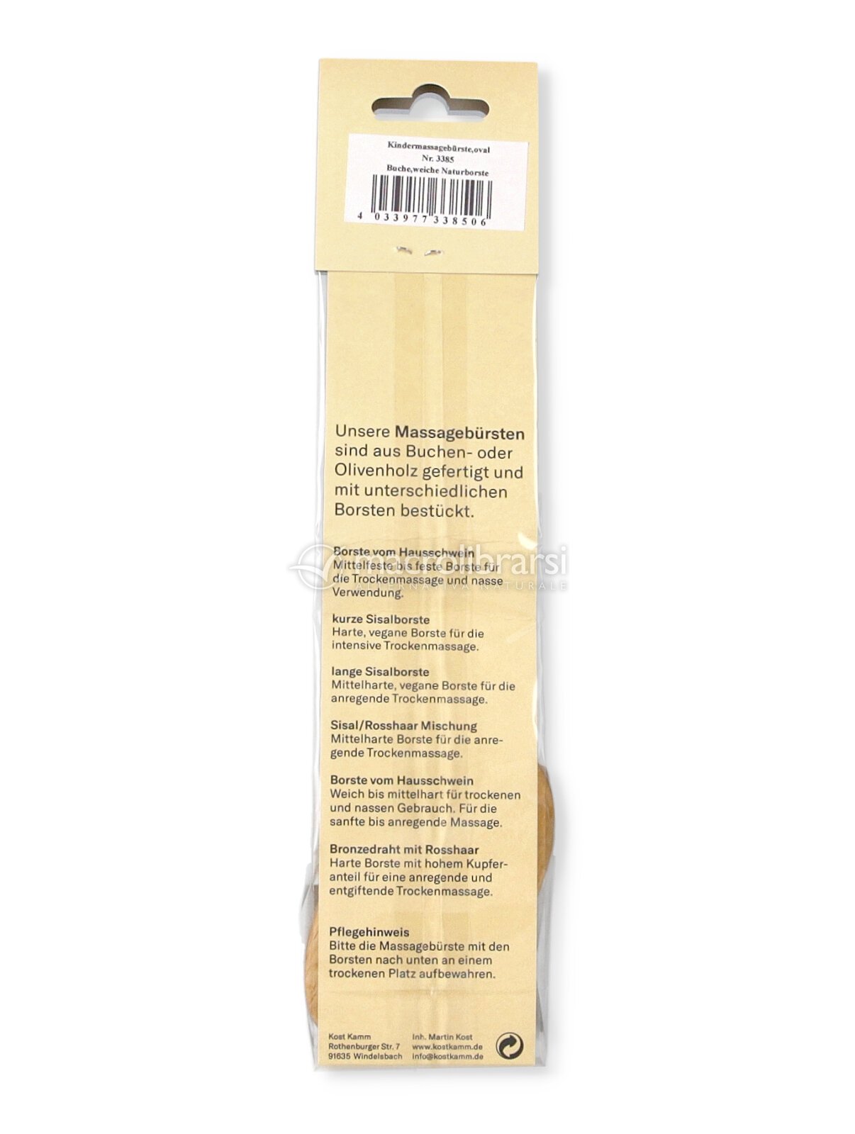 Piccola Spazzola da Bagno Ovale per bambini in legno di faggio con Setole naturali Medio Dure (pelo di suino)