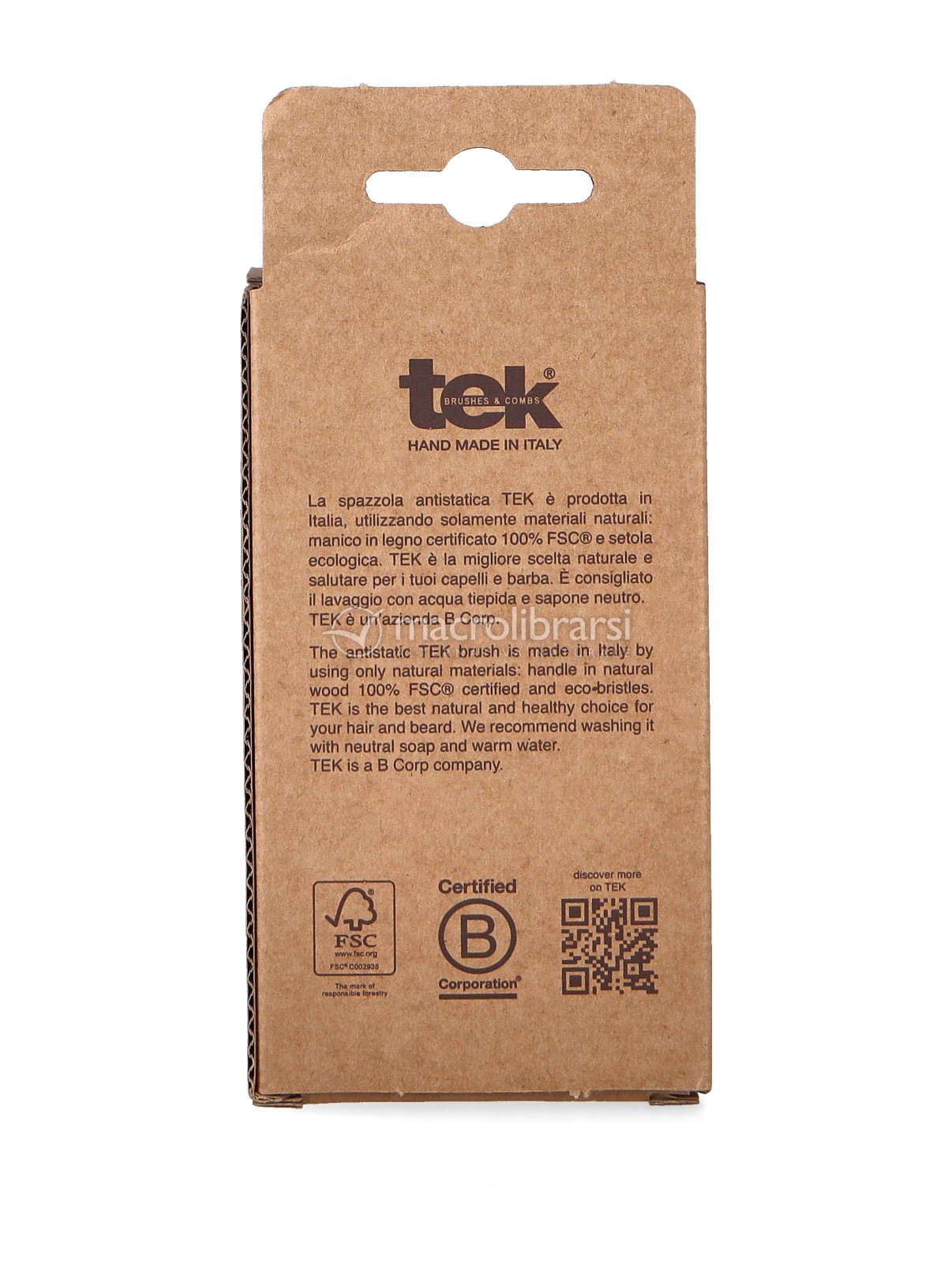 Realizzata in legno di frassino certificato FSC® con pin in legno di carpine e cinghietto in cotone naturale, la Spazzola Massaggio Cuoio Capelluto TEK è compatta, leggera e adatta a tutti i tipi di capelli.