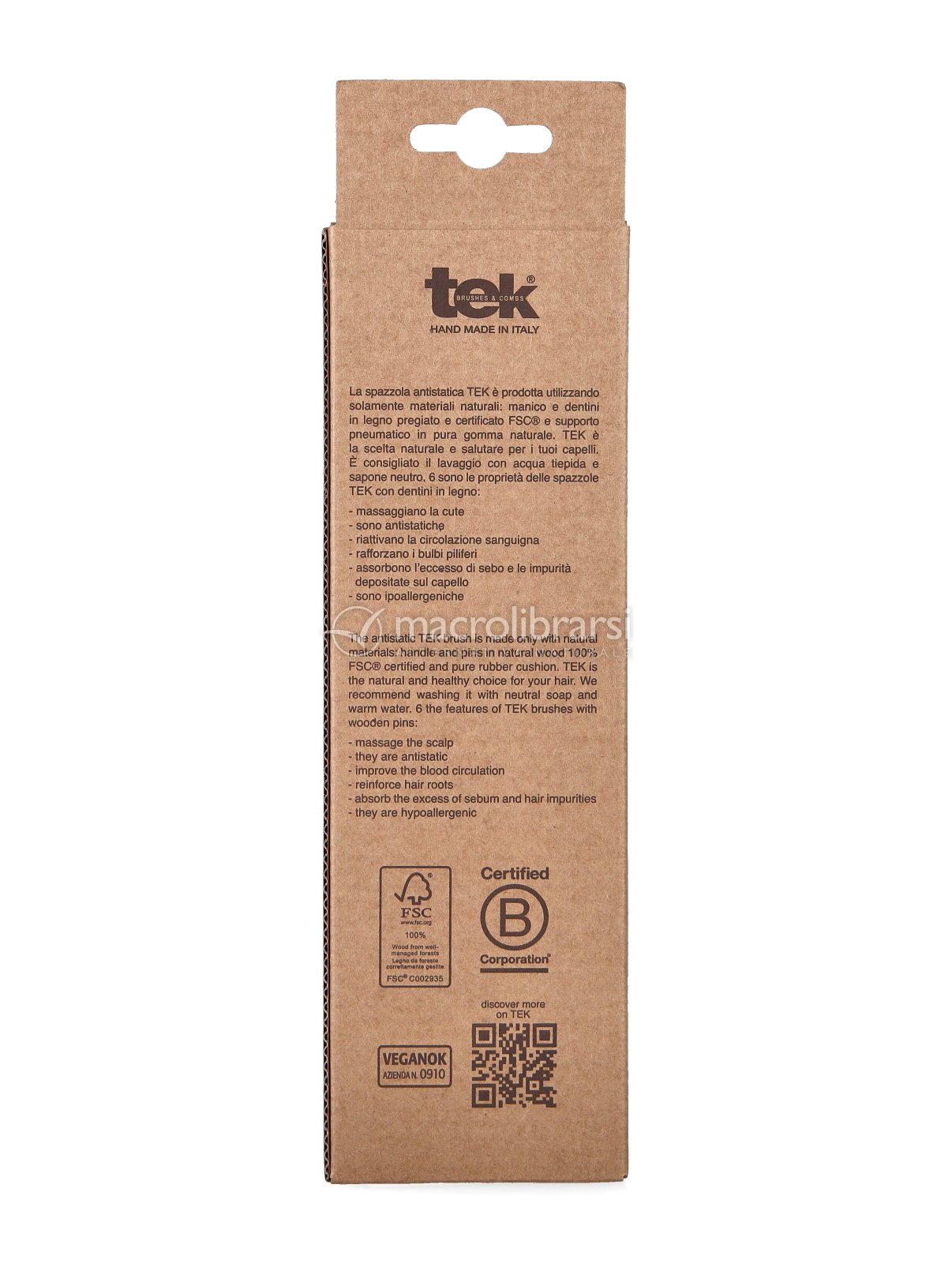 Questo prodotto TEK è perfetto se cerchi una spazzola in legno con setole 100% vegan che riduca l'effetto elettrostatico e consenta di volumizzare i capelli senza strapparli.