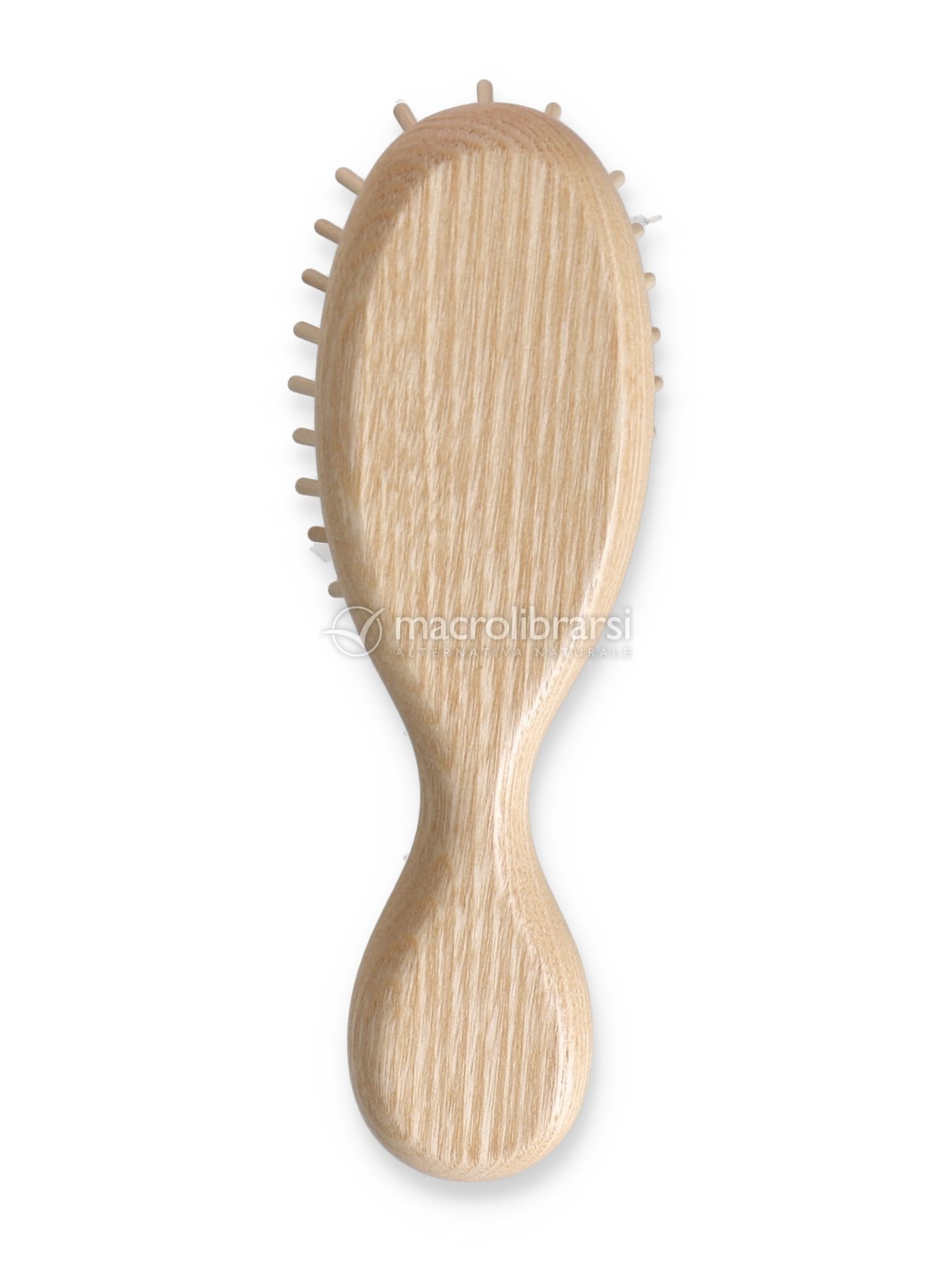 Realizzata in legno di frassino certificato 100% FSC®, questa piccola spazzola ovale in legno naturale districa facilmente senza rovinare né elettrizzare i capelli grazie al dentino corto in legno di carpino certificato.