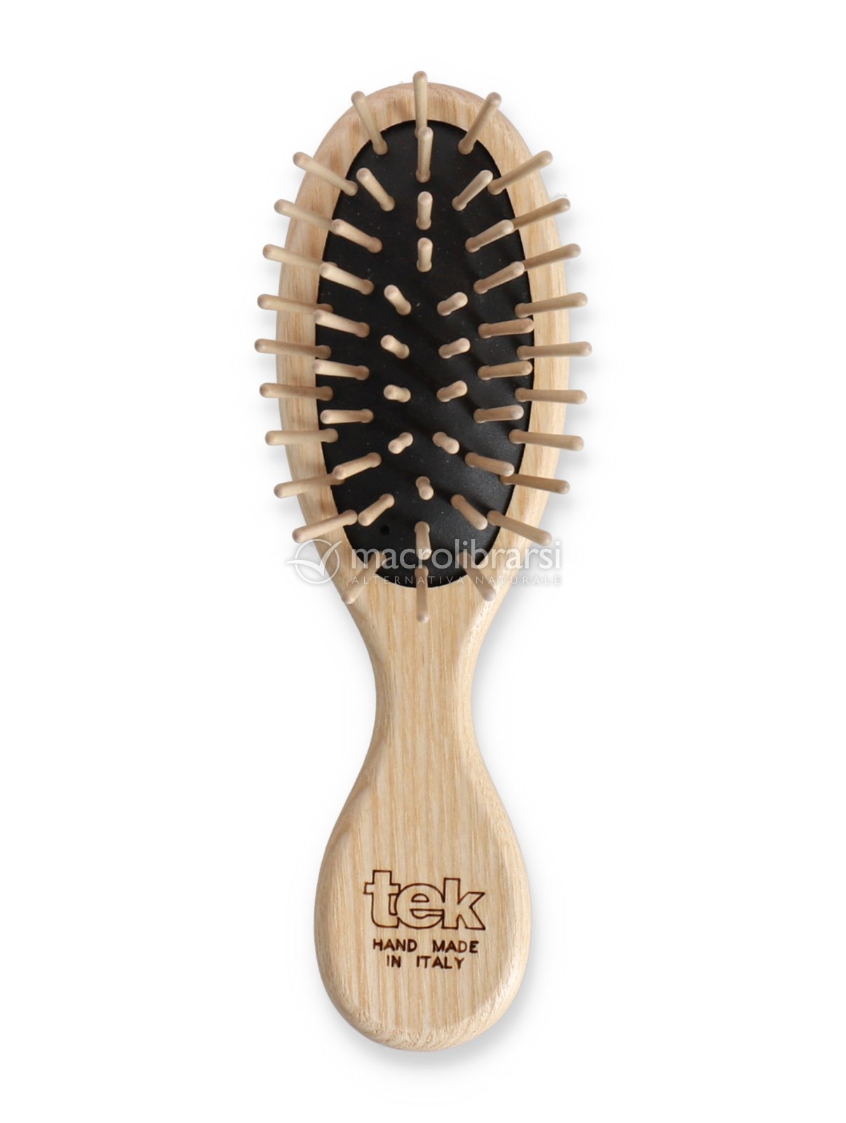 Questa spazzola ovale piccola in legno è la versione più compatta della Spazzola Ovale con Denti Corti, best-seller di TEK.