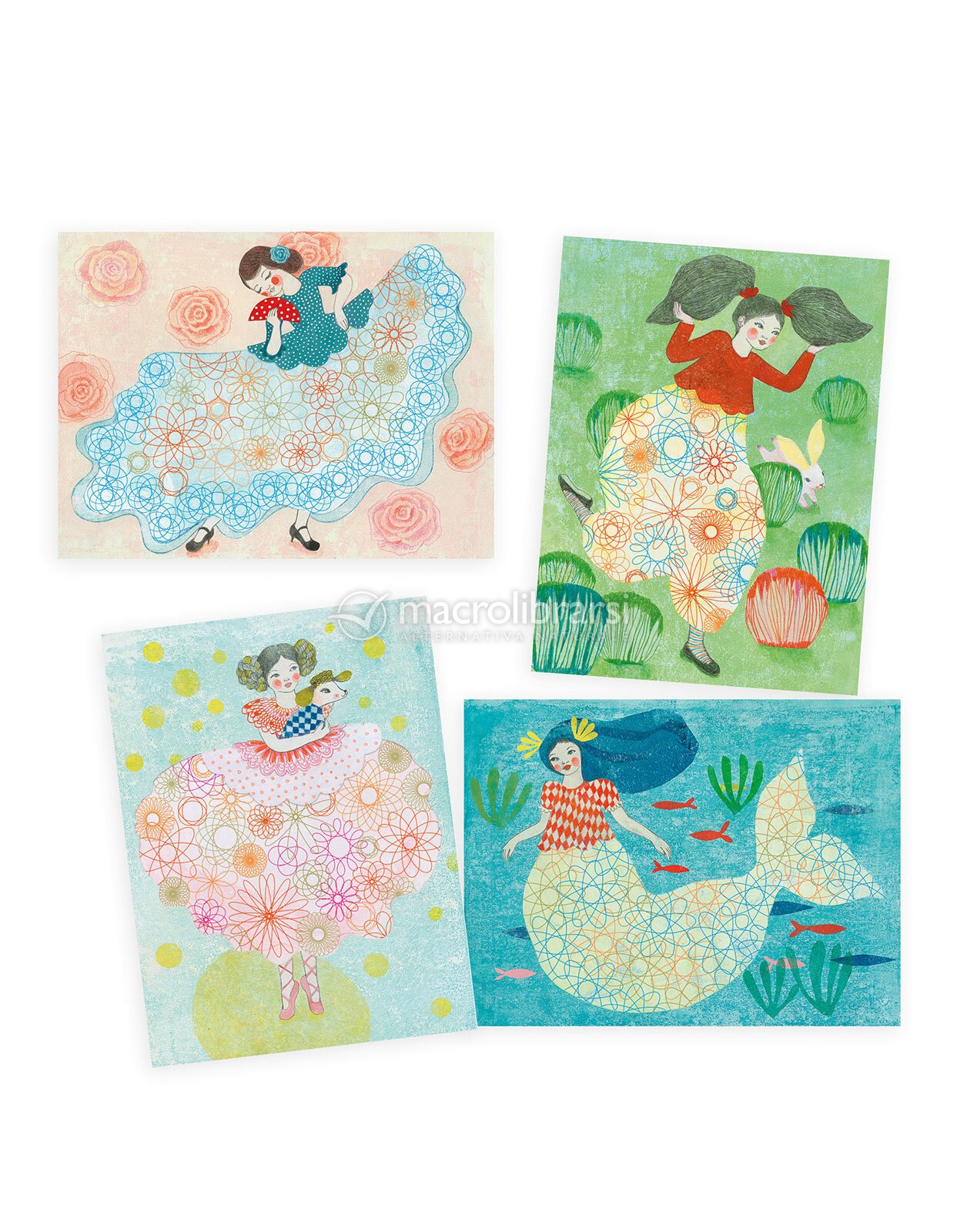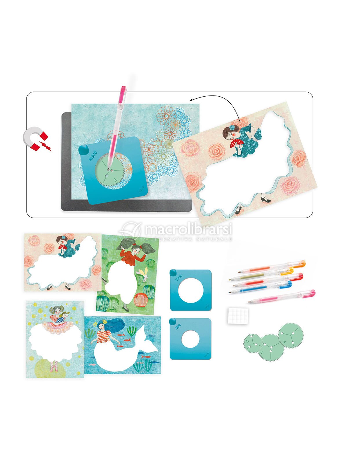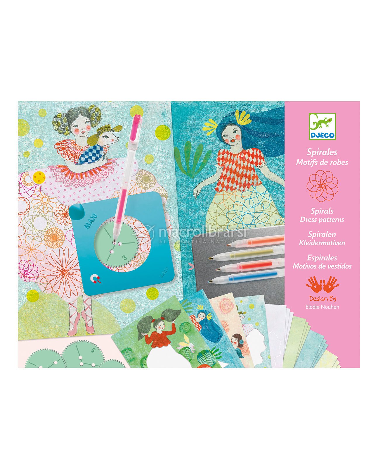 Il gioco con sagome e strumenti per disegnare abiti a spirale di Djeco è Geniale!