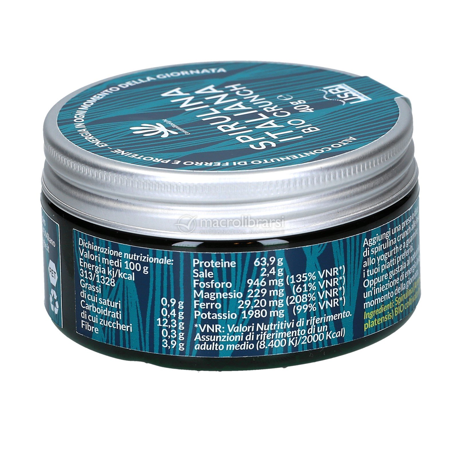 Molto positivo il fatto che la Spirulina Italiana Biologica Crunch, sia di coltivazione biologica italiana, in questo modo offre maggiori garanzie rispetto ad un prodotto importato. Inoltre la Spirulina Italiana Biologica Crunch è priva di additivi ,croccante e può essere ingerita facilmente con un sorso di acqua come una compressa.