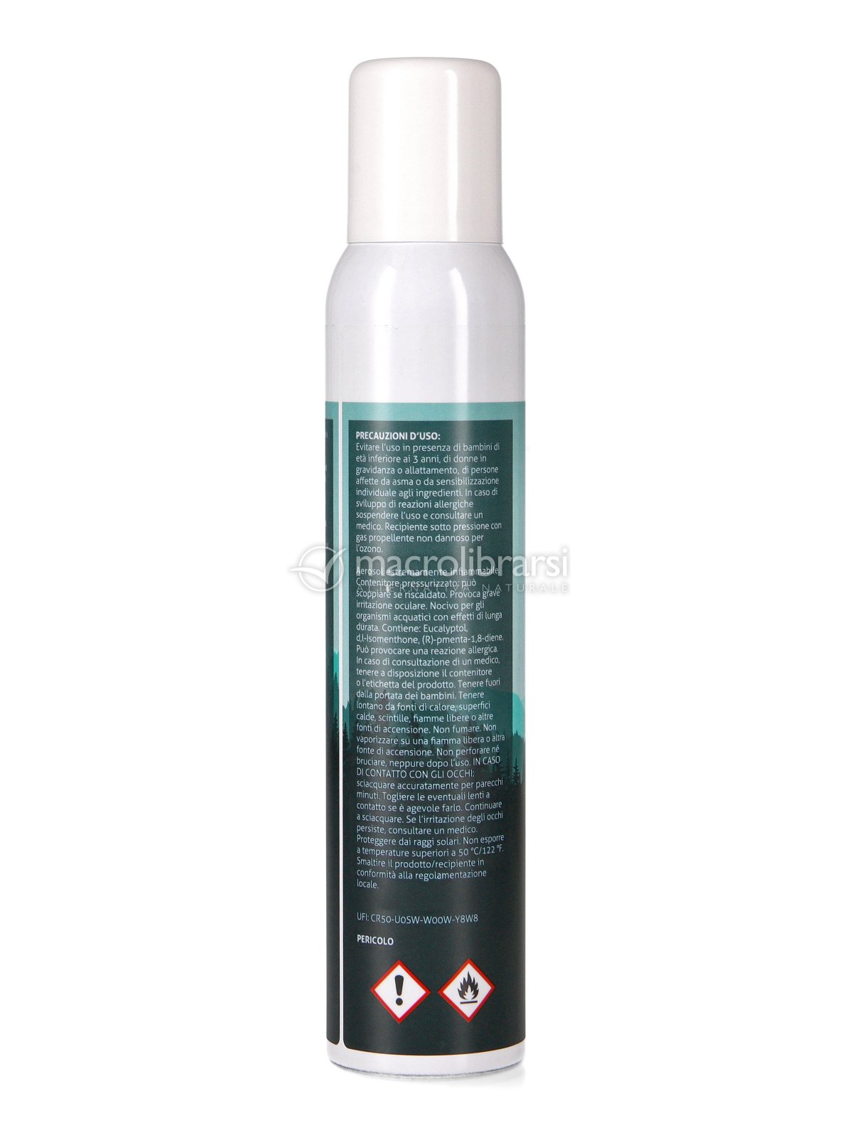| Avvertenze | Evitare l'uso in presenza di bambini d'età inferiore ai 3 anni, di donne in gravidanza o allattamento, in persone affette da asma o da sensibilizzazione individuale agli ingredienti. In caso di sviluppo di reazioni allergiche sospendere l'uso e consultare un medico. Recipiente sotto pressione con gas propellente non dannoso per l'ozono. Aerosol estremamente infiammabile. Contenitore pressurizzato può scoppiare se riscaldato. Provoca grave irritazione oculare. Nocivo per gli organismi acquatici con effetti di lunga durata. In caso irritazione oculare di consultazione di un medico, tenere a disposizione il contenitore o l'etichetta del prodotto. Tenere fuori dalla porta dei bambini. Tenere lontano da fonti di calore, superfici calde, scintille, fiamme libere o altre fonti di accensione Non fumare. Non vaporizzare su una fiamma libera o altra fonte di accensione. Non perforare né bruciare, neppure dopo l'uso. IN CASO DI CONTATTO CON GLI OCCHI: sciacquare accuratamente per parecchi minuti. Togliere le eventuali lenti a contatto se è necessario. Continuare a sciacquare. Se l'irritazione degli persiste, consultare un medico. Proteggere dal raggi solari. Non esporre a temperature superiori a 50 °C/122°F. Smaltire il contenitore secondo le disposizioni del proprio comune. |