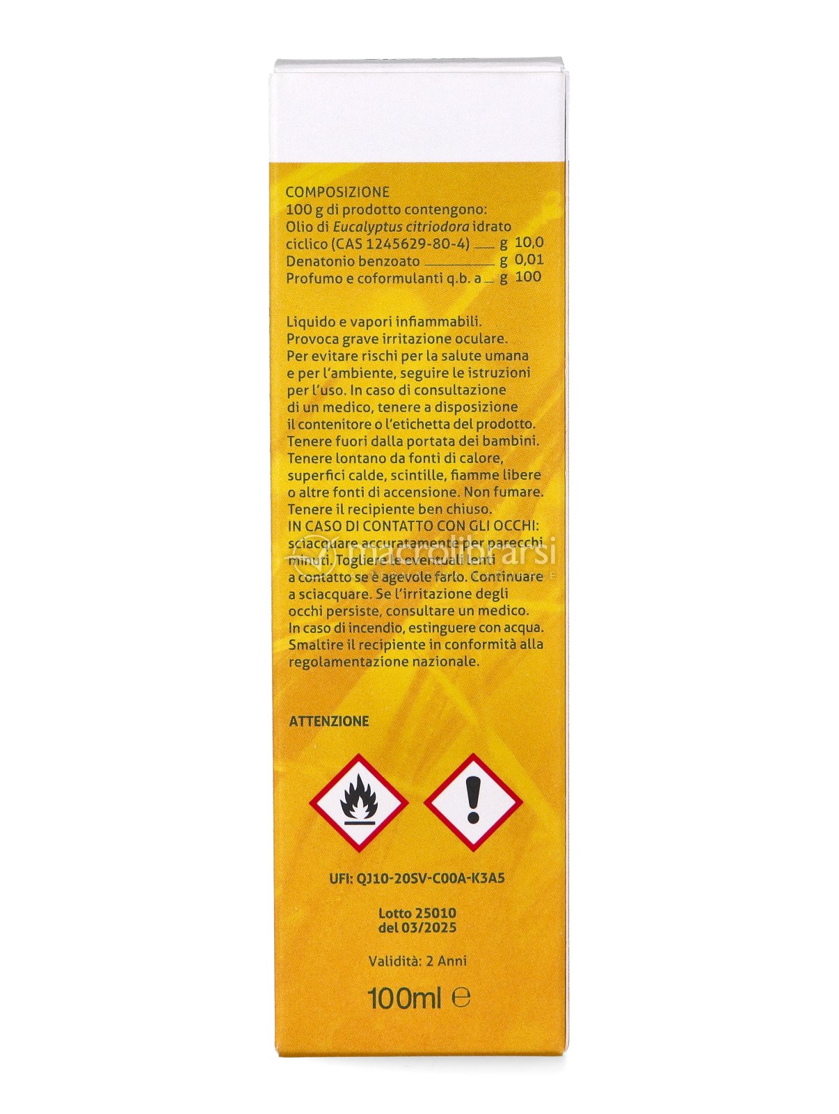 Spray corpo per la protezione contro le zanzare a base di un principio attivo di origine vegetale (Eucalyptus citriodora).