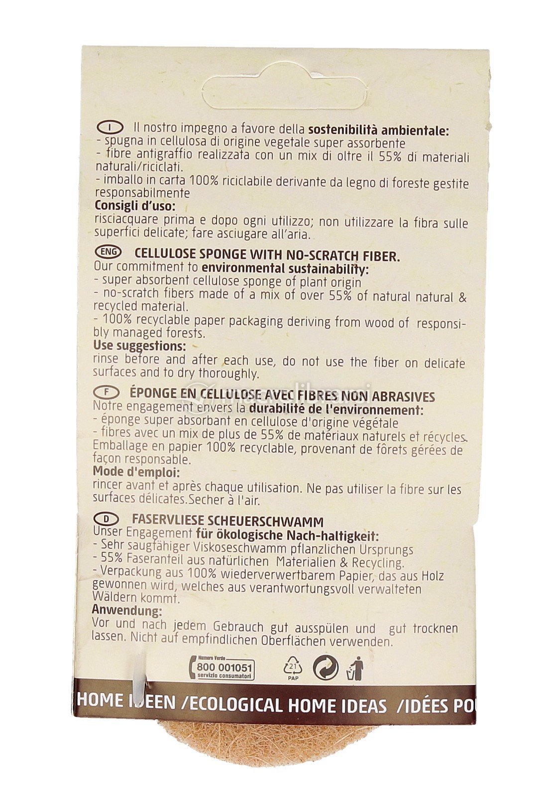 Spugna ecologica in cellulosa e fibra antigraffio ideale per la pulizia della cucina.