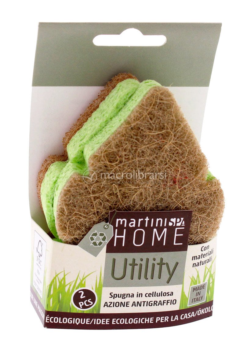 Ho acquistato sia spugna in entrambe le versioni (rettangolare o a forma di foglia) e mi sono trovata benissimo. Quando la parte abrasiva in fibra naturale si sfalda, mi da il segnale che è arrivato il momento di smaltire la spugna. La utilizzo per le stoviglie delicate, come i bicchieri e le cose che non metto in lavastoviglie.