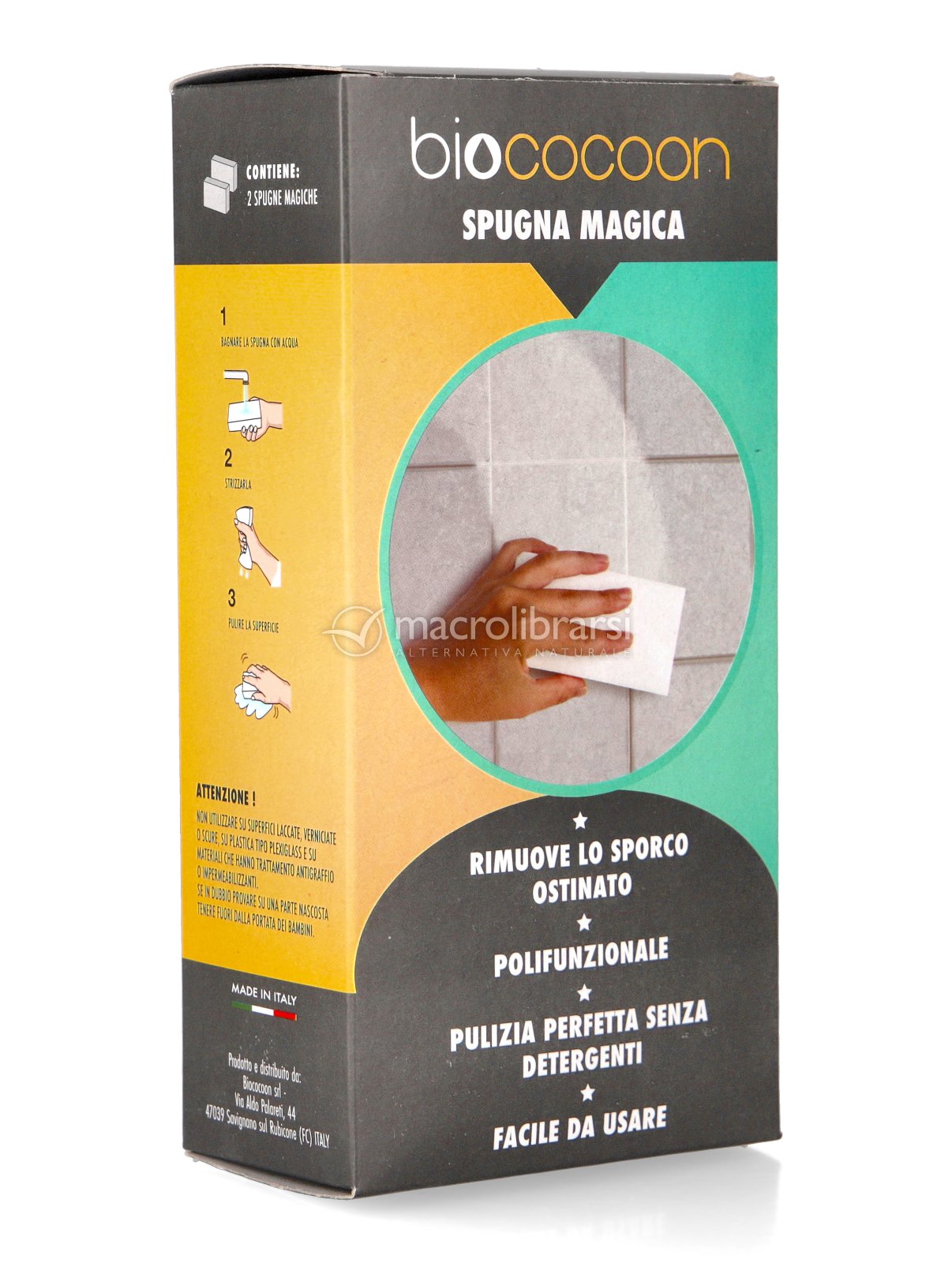 La Spugna Magica Biococoon è un detergente multifunzione, ecologico ed antibatterico adatto per tutti i tipi di superfici (legno, metallo, vetro, pelle).