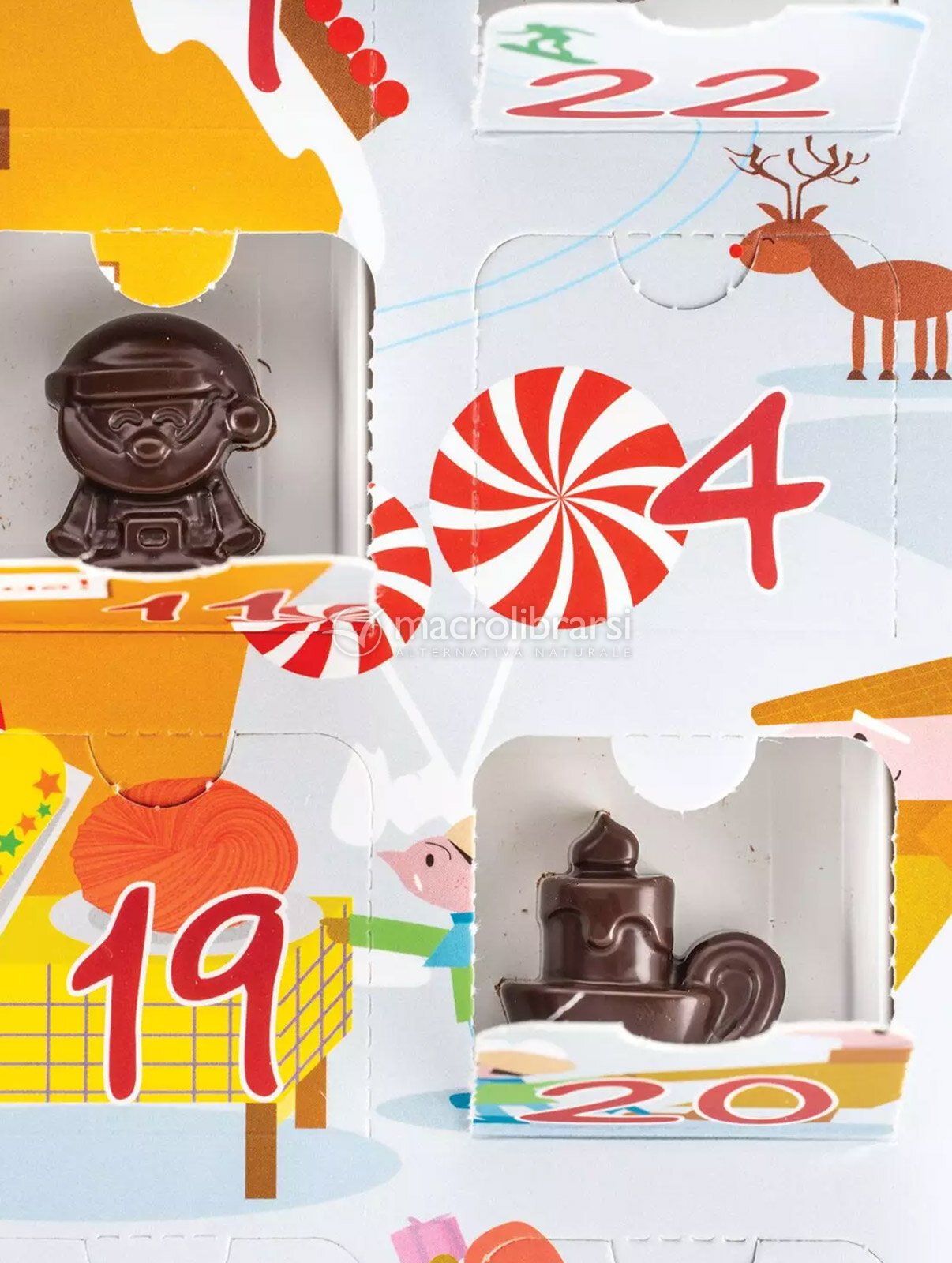 Pulisci e asciuga lo stampo; lucida con un panno morbido. Tempera il cioccolato e colalo nelle cavità. Vibra leggermente per eliminare bolle; lascia cristallizzare e sforma. Disponi i pezzi nella scatola per comporre il tuo countdown.