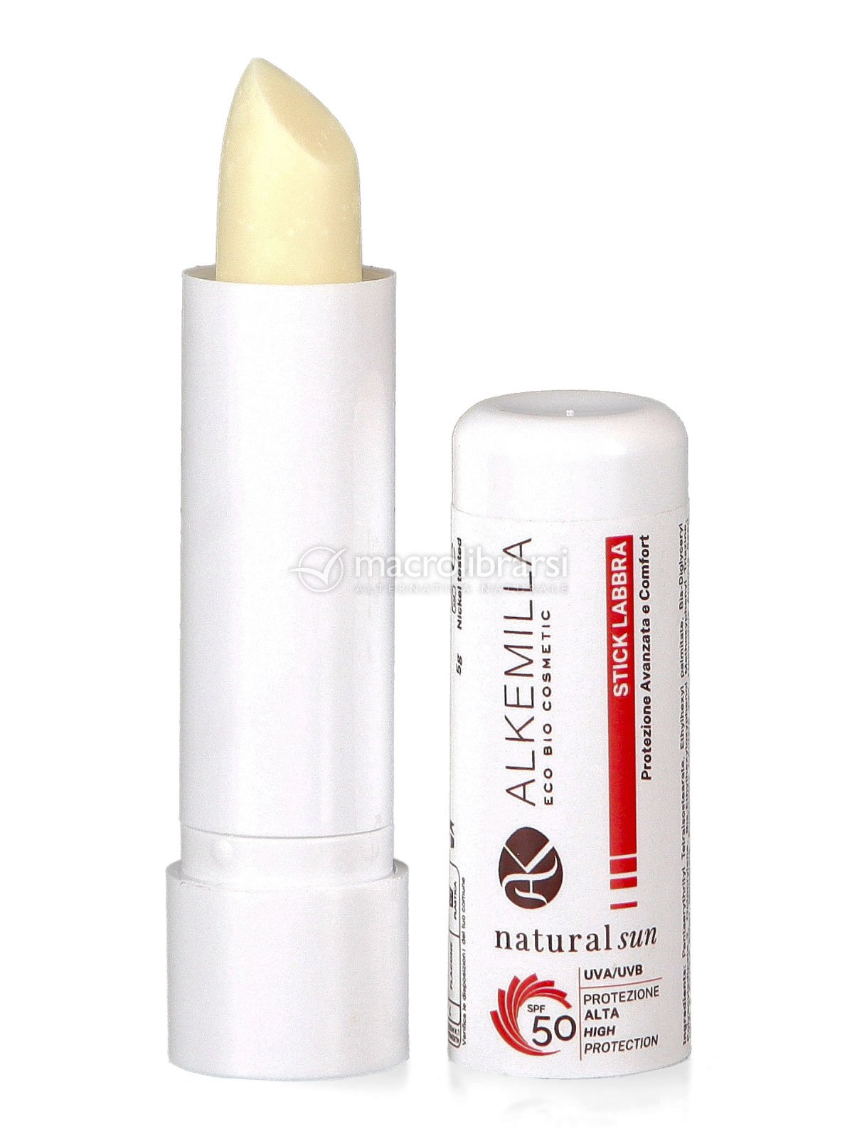 Lo Stick Labbra Natural Sun di Alkemilla offre una protezione molto alta (SPF 50) contro i raggi UVA e UVB, combinando l'efficacia della protezione solare con la ricchezza di attivi vegetali idratanti per labbra sempre morbide.