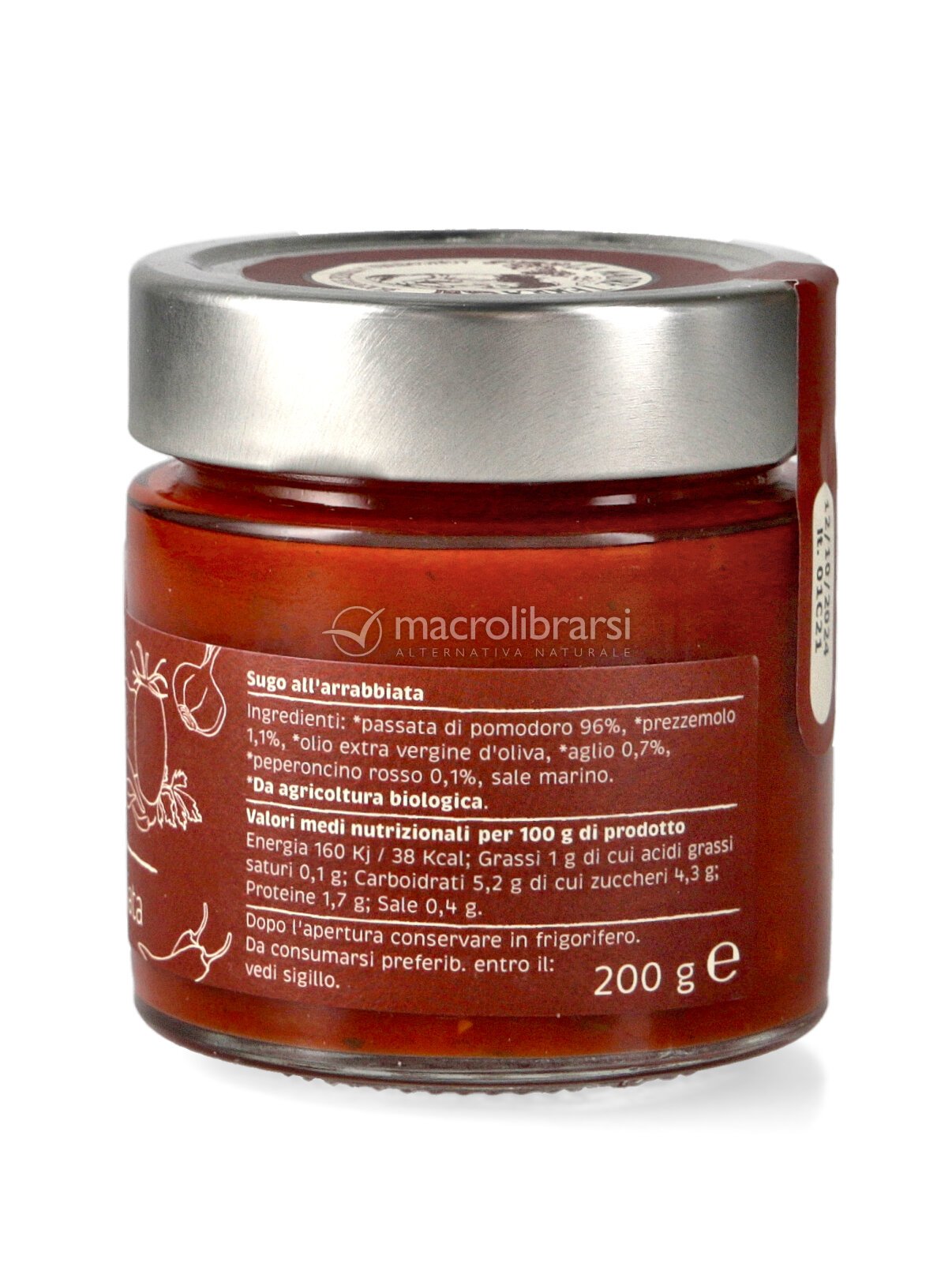 Il sugo all'Arrabbiata biologico di La Terra Madre è un sugo prodotto con olio extravergine d'oliva, aglio e peperoncino.
