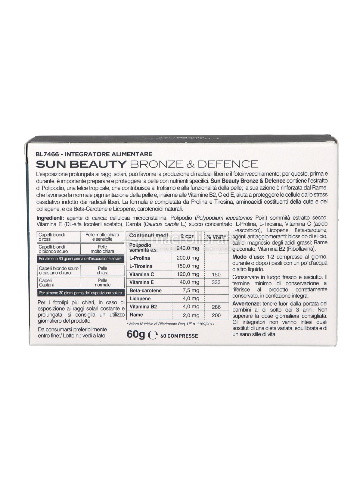 Sun Beauty Bronze & Defence di Biosline contiene una combinazione di ingredienti specifici per il benessere della pelle esposta al sole.