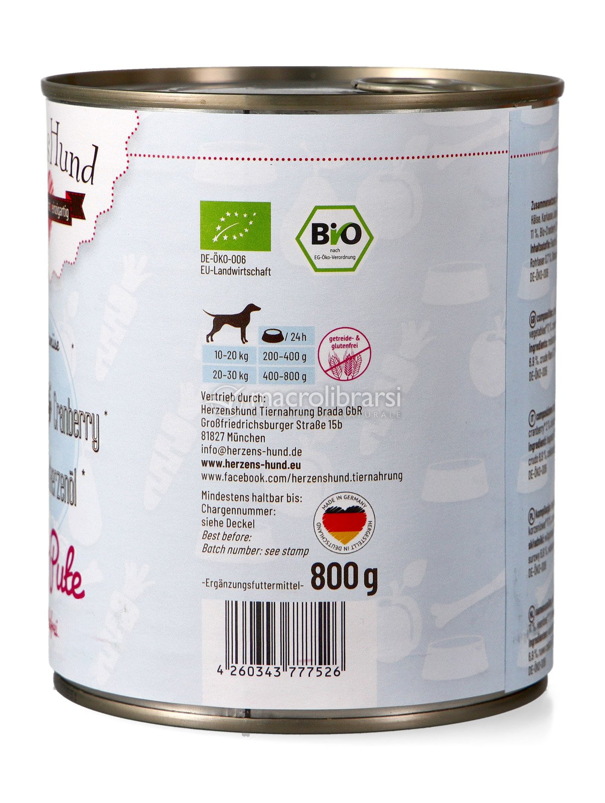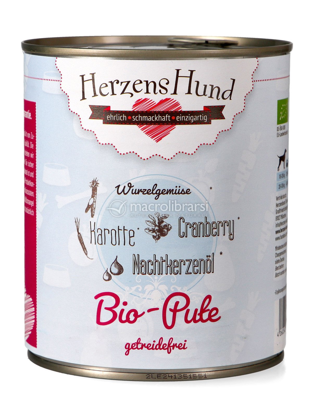 Tacchino Bio con carote e mirtillo rosso di Herzens Hund è un alimento umido complementare di qualità premium per cani adulti di tutte le razze.