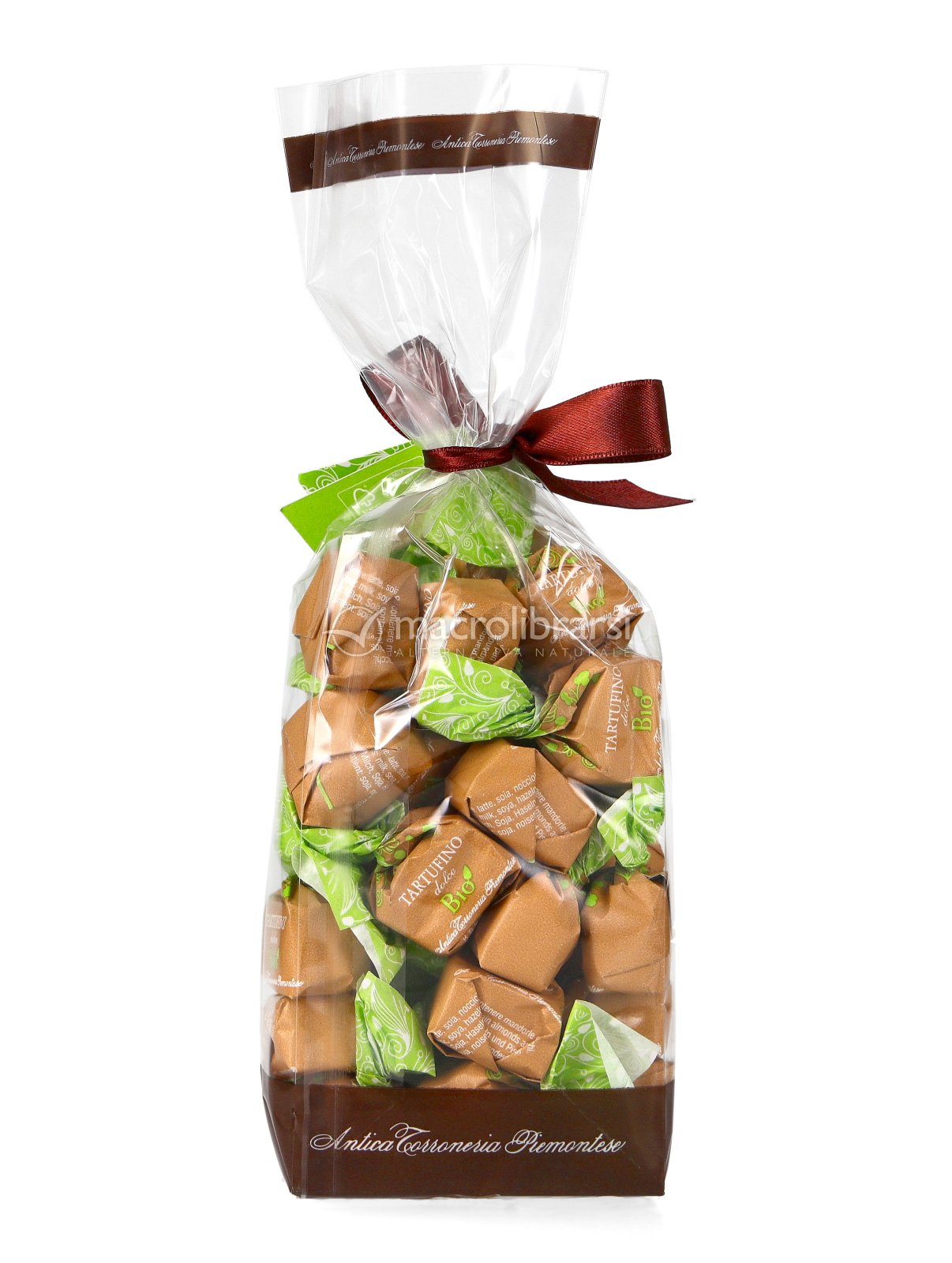 Tartufi biologici dell'Antica Torroneria Piemontese con cioccolato al latte e nocciole, un regalo goloso e raffinato.