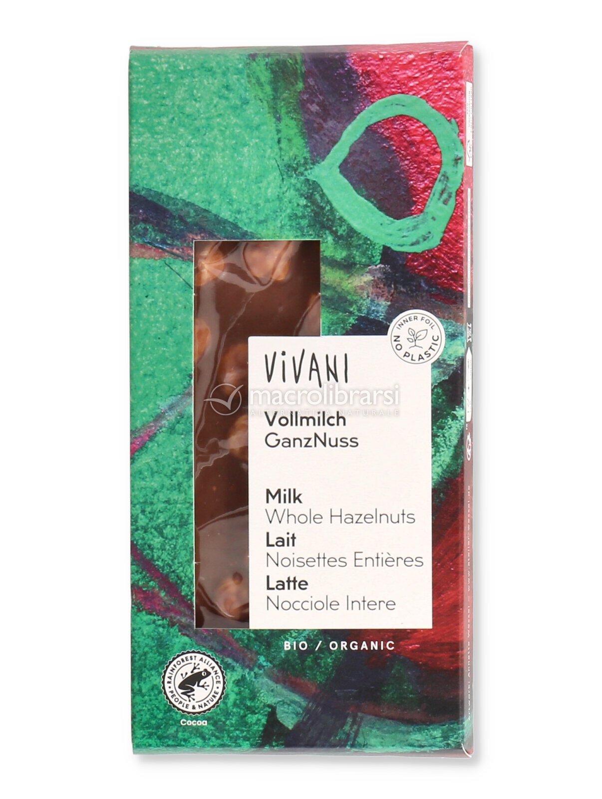Tavoletta di cioccolato al latte con nocciole intere buonissima! Cercavo del cioccolato al latte con nocciole e questo di Viviani è stata una ottima scelta. Viviani è sempre una certezza.