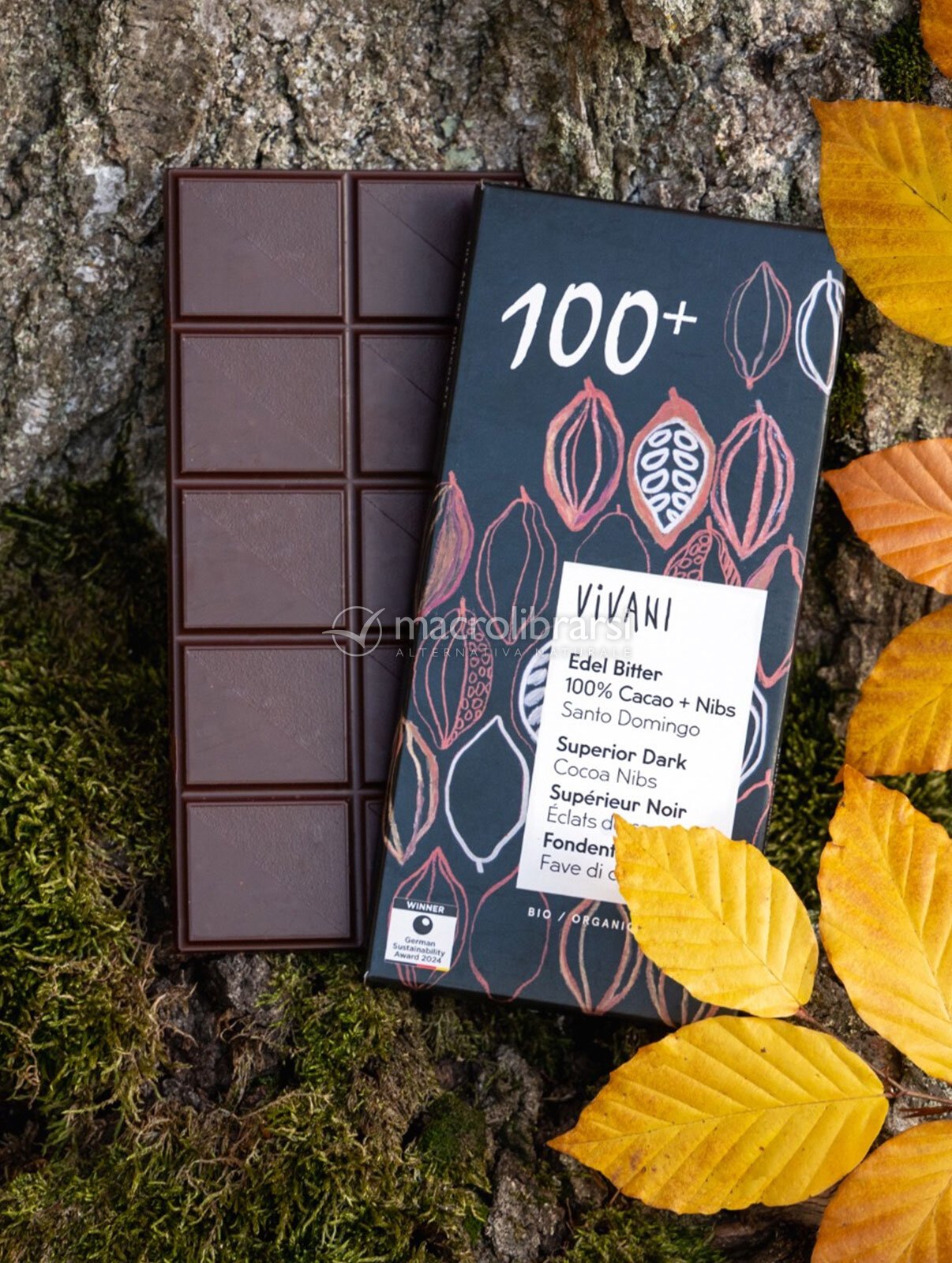 Vivani propone una tavoletta di purissima pasta di cacao al 100%, proveniente da Santo Domingo.