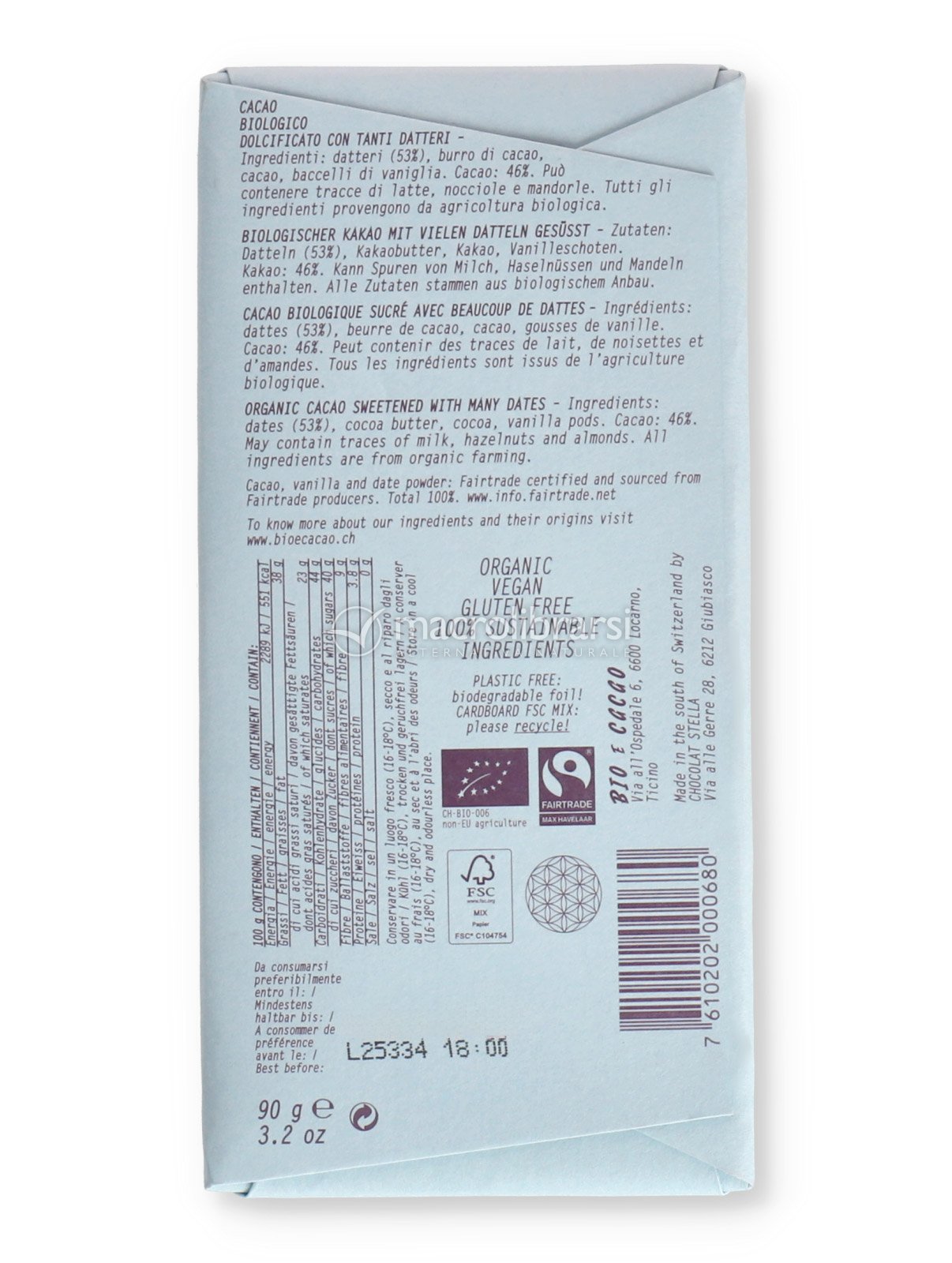 | Lo trovi in | Alimenti e Bevande: #Cioccolato bio con frutta secca |