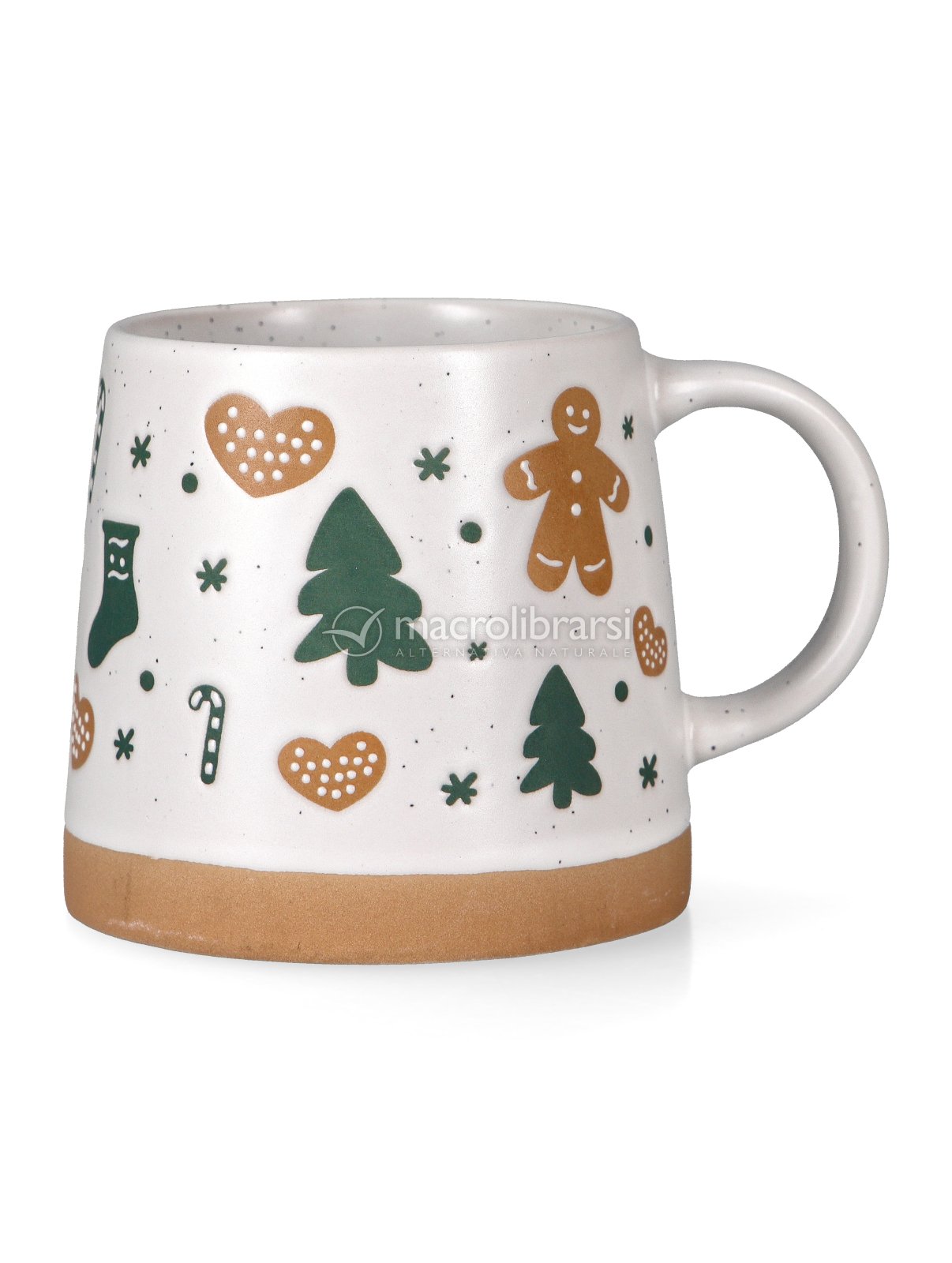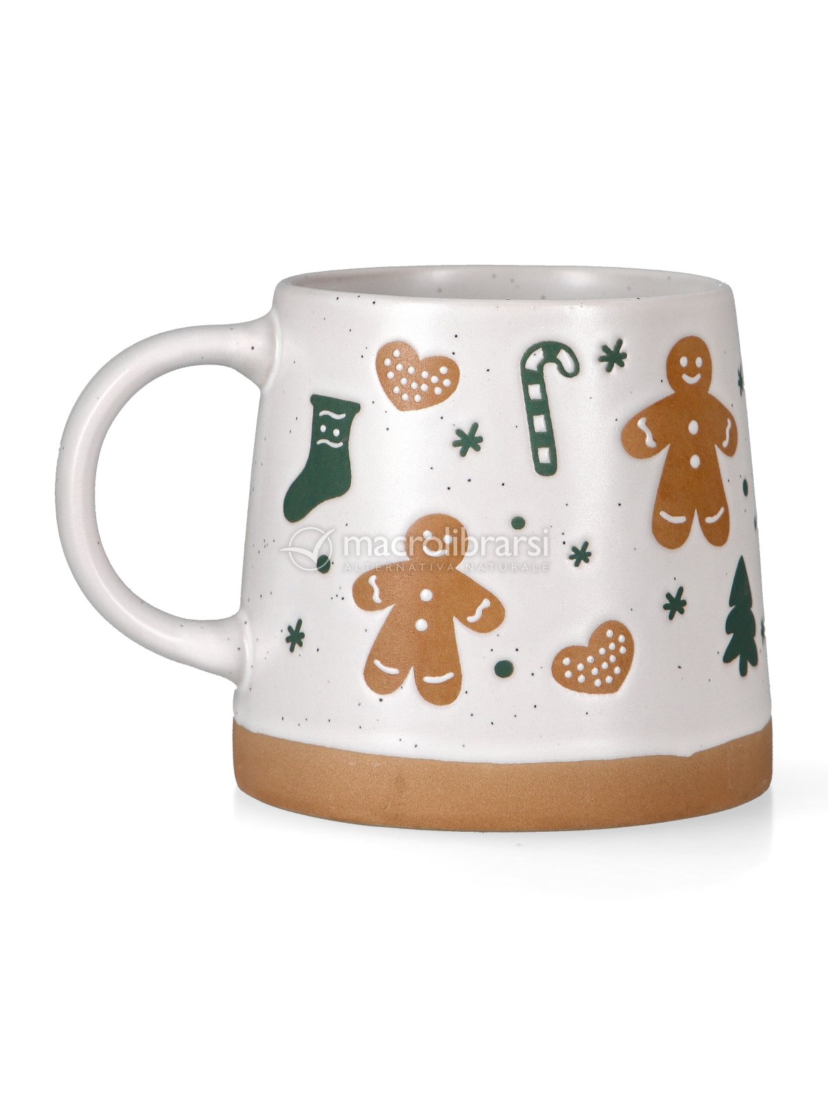 Porta in tavola la magia del Natale con questa tazza in grès porcellanato decorata con deliziosi omini di pan di zenzero.