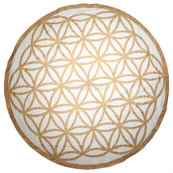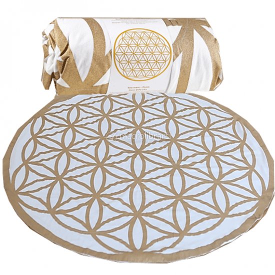 Bellissimo telo in cotone color bianco e oro con simbolo Fiore dell vita.