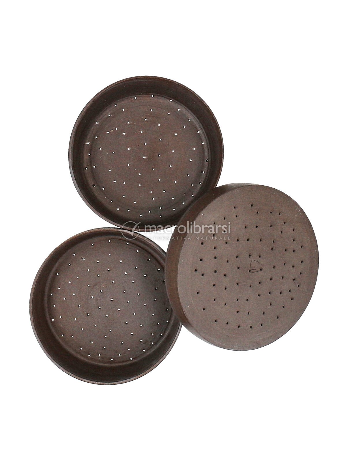 Essendo realizzato a mano, ogni pezzo è unico ed è formato da 3 elementi impilabili, ognuno dei quali possiede dei fori.
