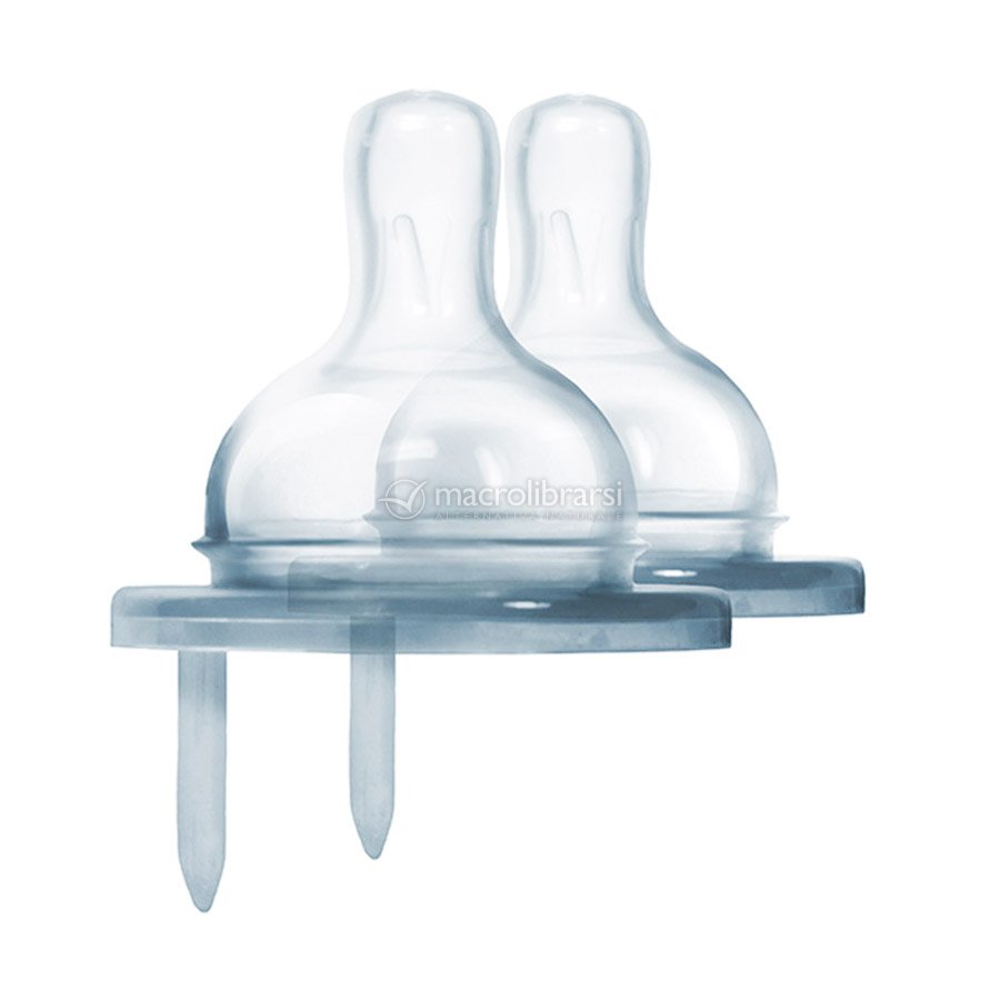 Tettarelle in silicone da montare su biberon e bottiglie Pura con foro che consente un flusso lento, adatto ai neonati.
