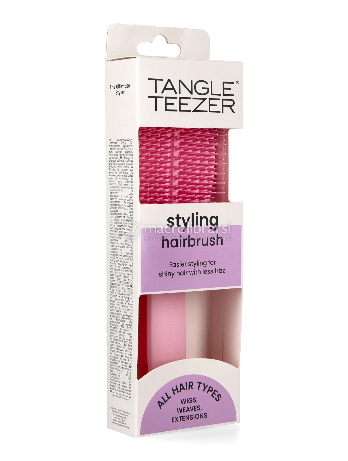 La "Ultimate Styler" di Tangle Teezer è un’alleata imprescindibile per chi desidera uno styling impeccabile sui capelli asciutti. L’impugnatura ergonomica e il design dei dentini garantiscono un risultato straordinario, donando luminosità e definizione alla chioma. Il controllo offerto dal manico rinforzato facilita la realizzazione di acconciature, assicurando una distribuzione uniforme delle ciocche. Questa spazzola si affianca perfettamente agli altri modelli di Tangle Teezer: la "The Ultimate Detangler" (fra l'altro, molto originale nella versione "Millennial Pink"), ideale per districare i capelli bagnati e distribuire trattamenti con balsamo e maschere, e la "Easy Dry & Go" (è prodotta in più versioni, oltre alla classica "Black"), studiata per ottenere una piega perfetta in pochi minuti. L’integrazione di questi strumenti consente una cura completa del capello, dal lavaggio allo styling, con risultati sempre professionali. Un prodotto da avere assolutamente nella routine di bellezza!