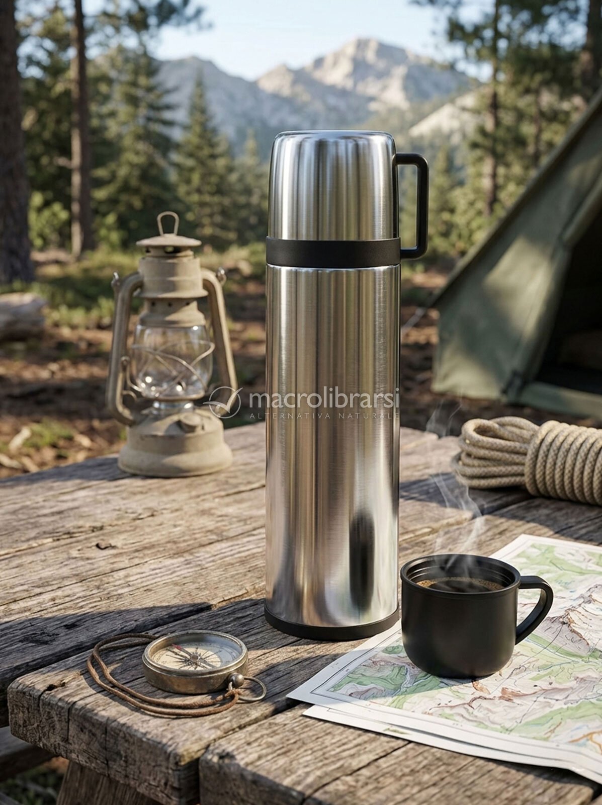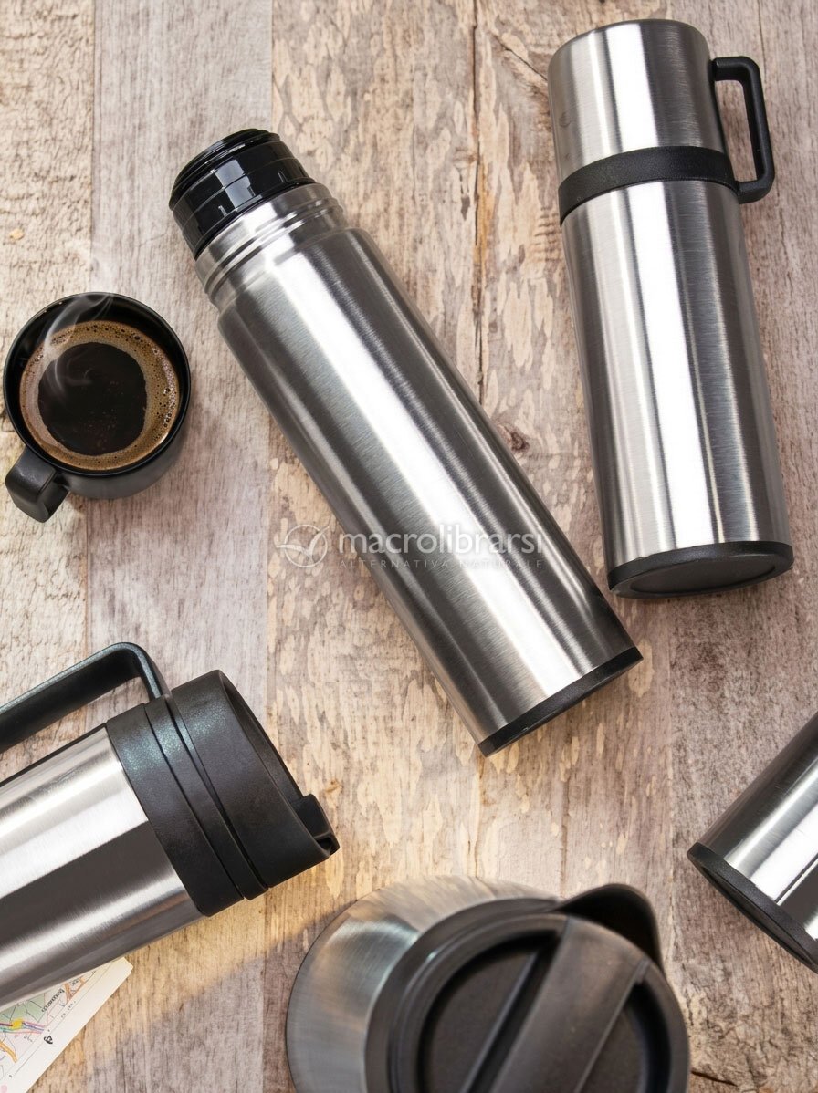 Se vuoi portare il caffè in ufficio (o in viaggio), questo termos è l’alleato perfetto: realizzato in acciaio inossidabile, con coperchio a tazza e chiusura di sicurezza, mantiene a lungo la temperatura delle bevande calde o fredde.