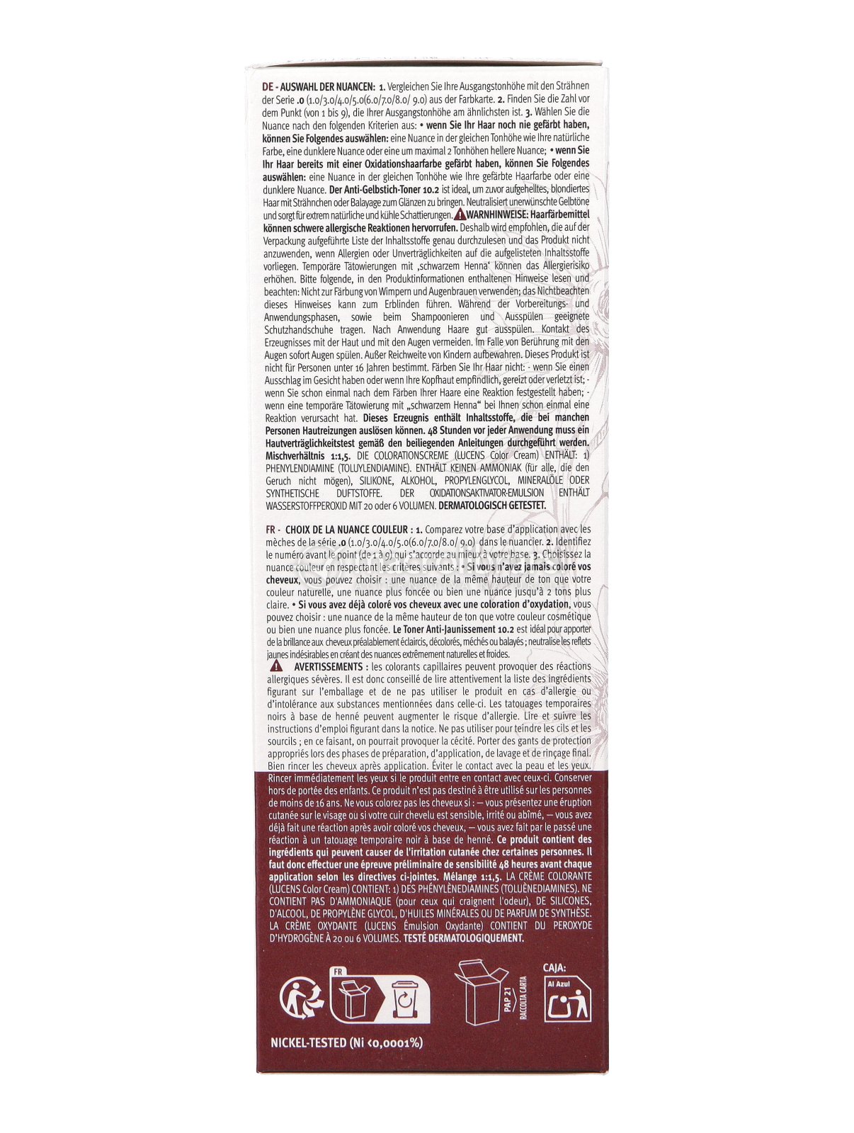 Lucens 10.2 Toner Antigiallo è ideale per rendere lucenti i capelli precedentemente schiariti, decolorati, con mèche o balayage, poichè netrualizza i riflessi gialli realizzando sfumature estremamente naturali e fredde.