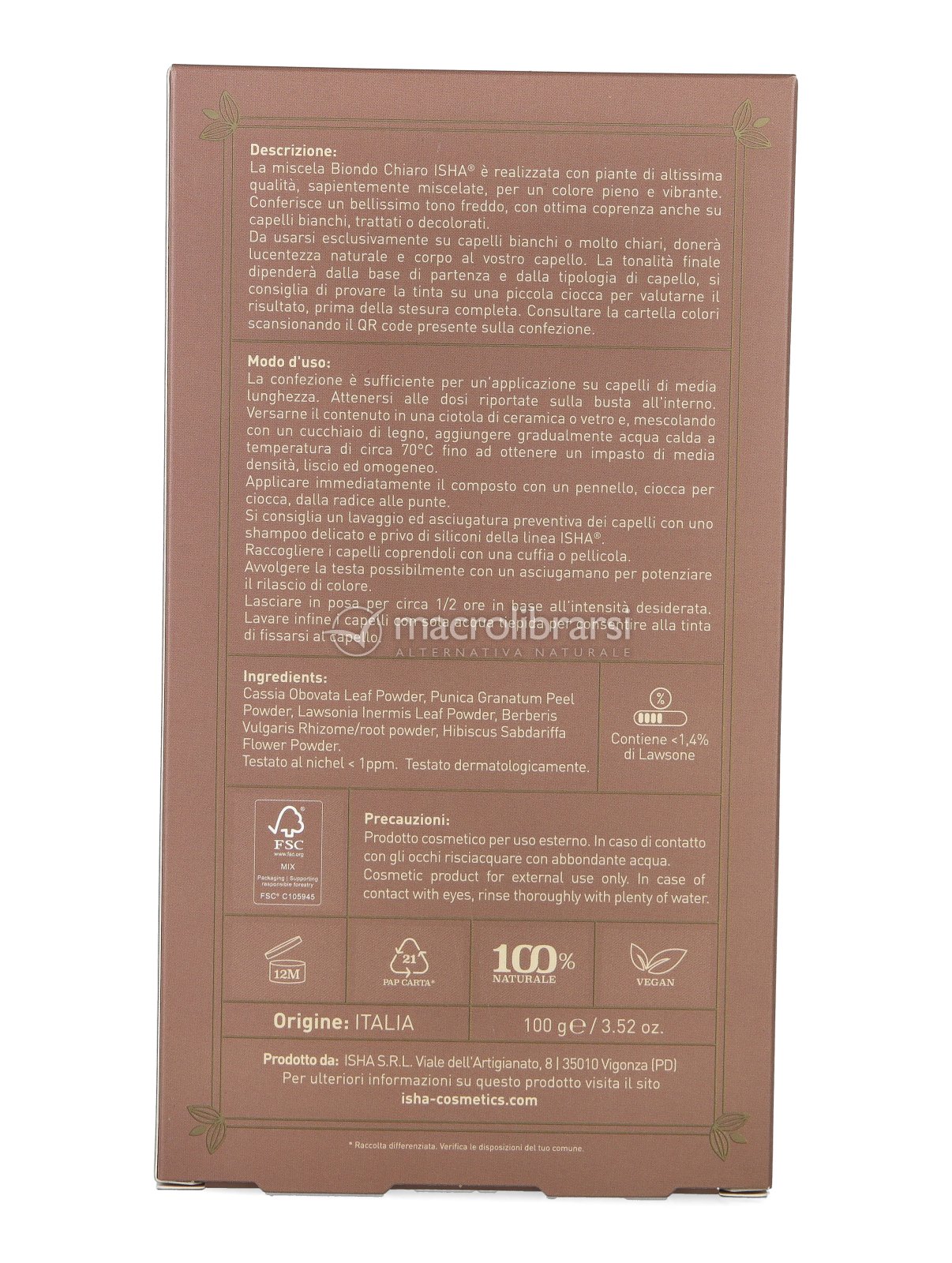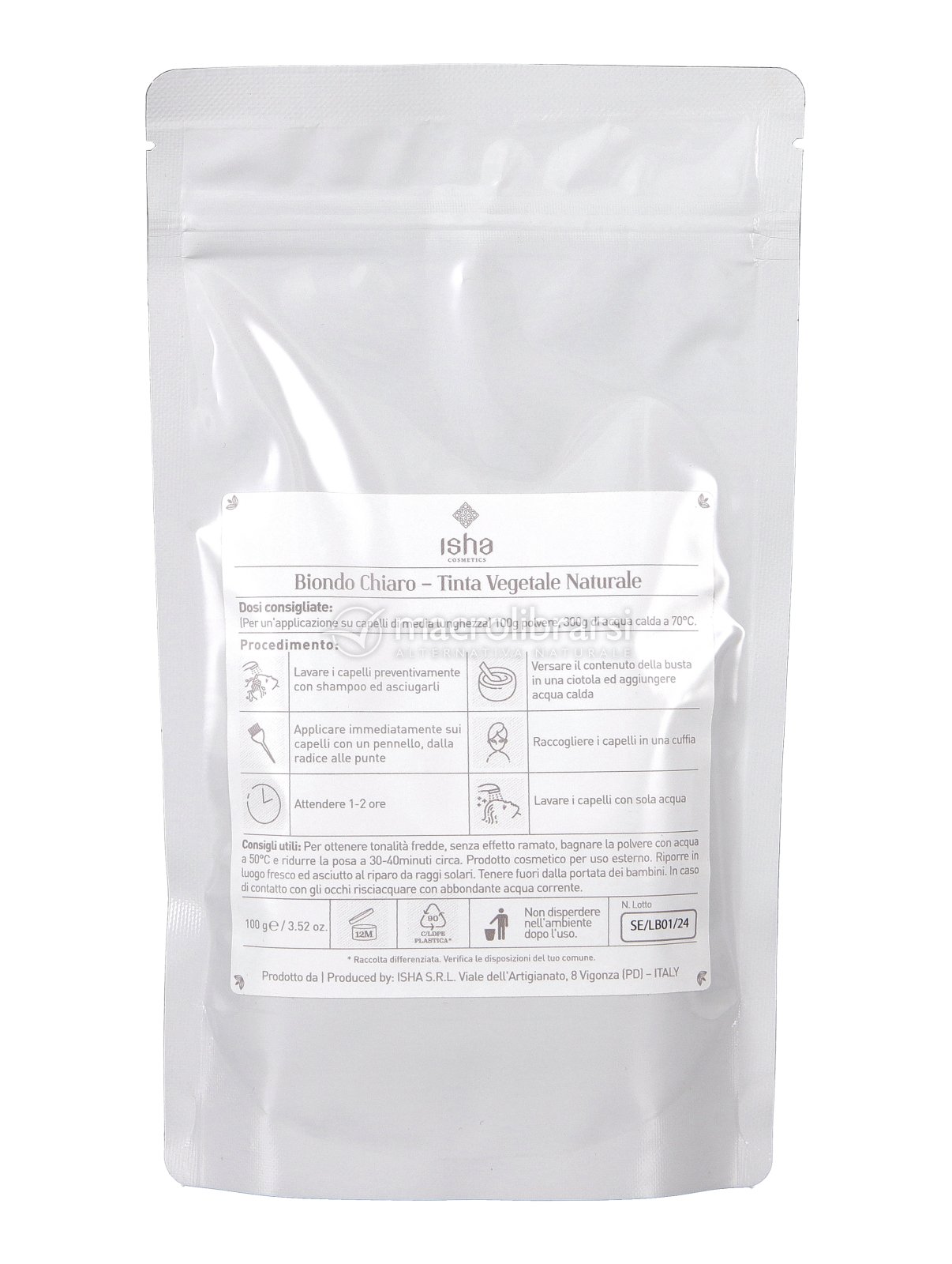 La tinta naturale Biondo Chiaro ISHA è realizzata con piante di altissima qualità per offrire un colore vibrante e luminoso.