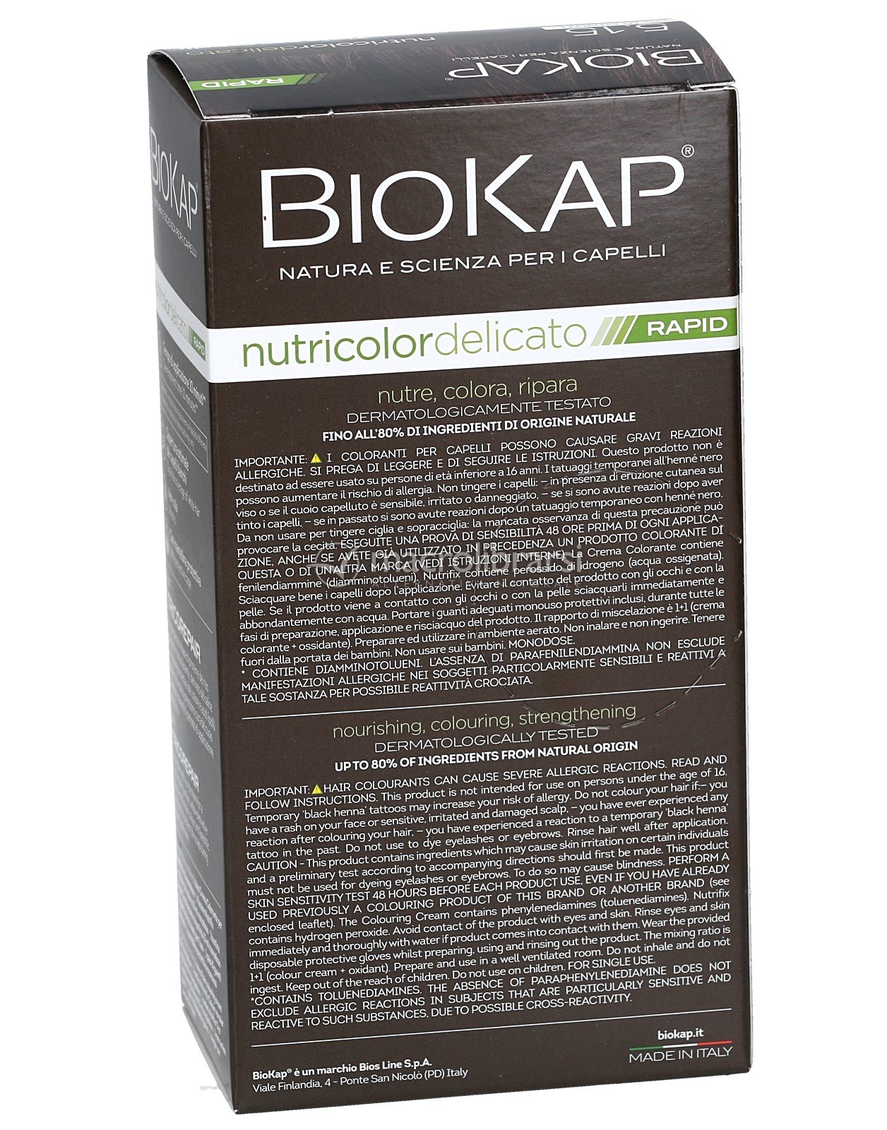 BioKap Nutricolor Tinta Delicato Rapid ingredienti vegetali e ad alta tollerabilità cutanea.