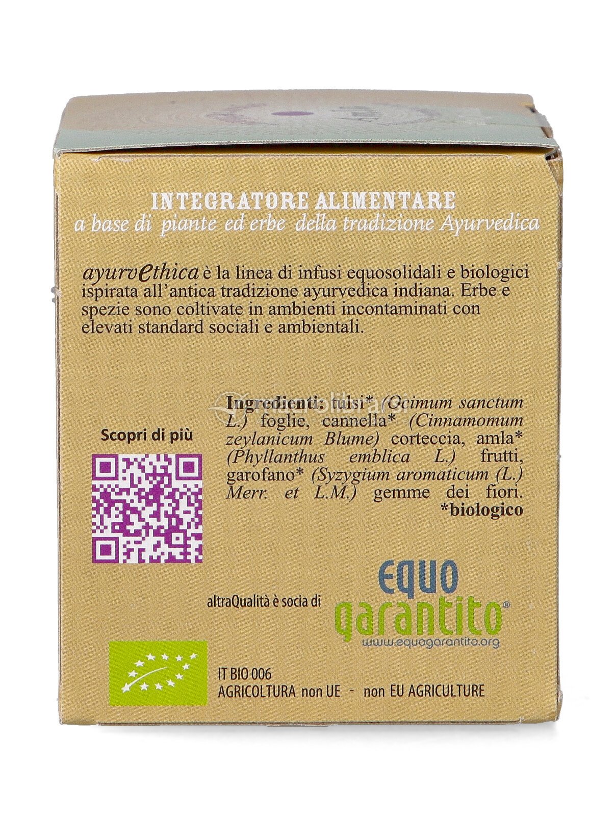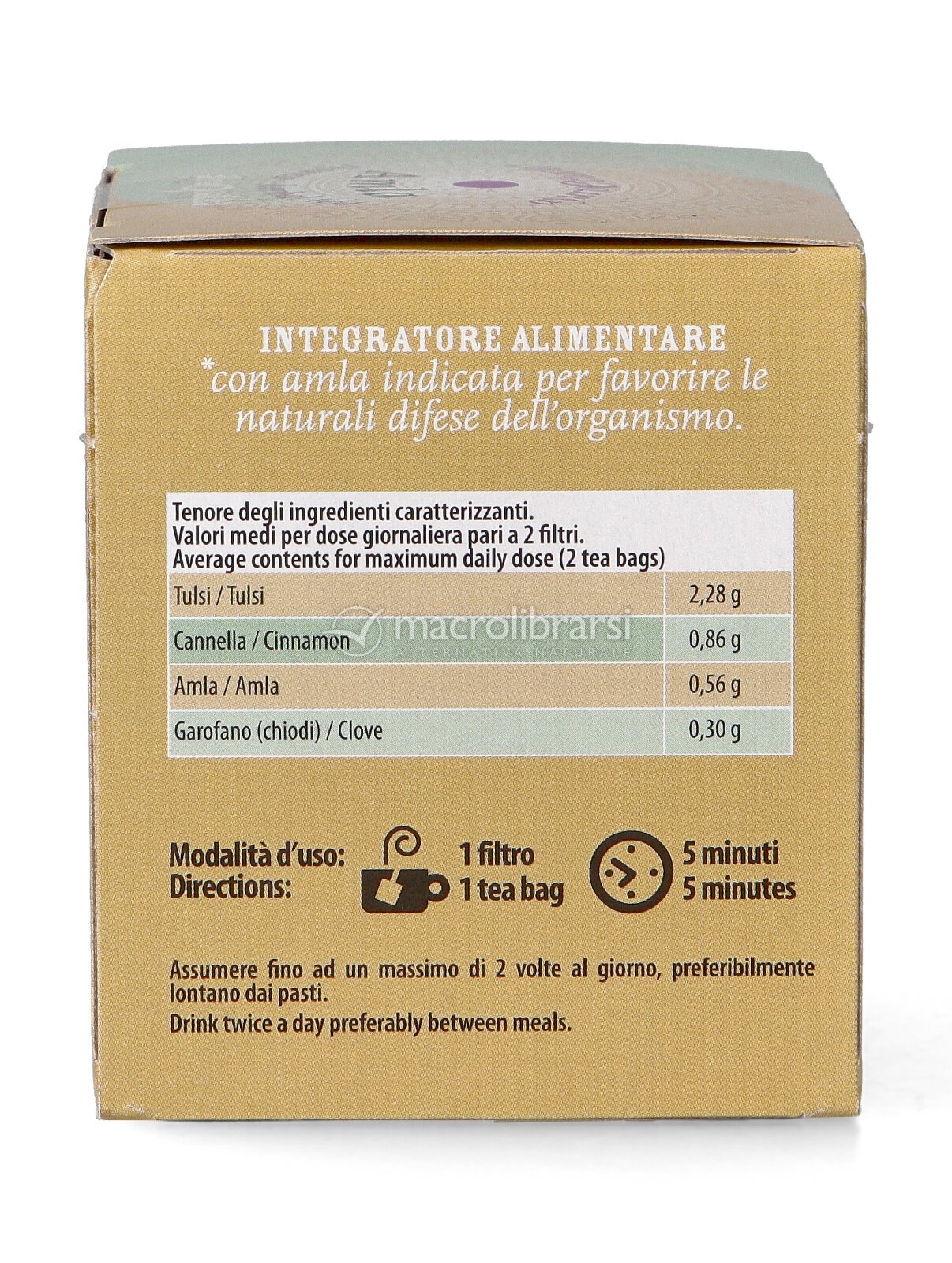 Una tisana in filtri ispirata alla tradizione ayurvedica per favorire le naturali difese dell'organismo.