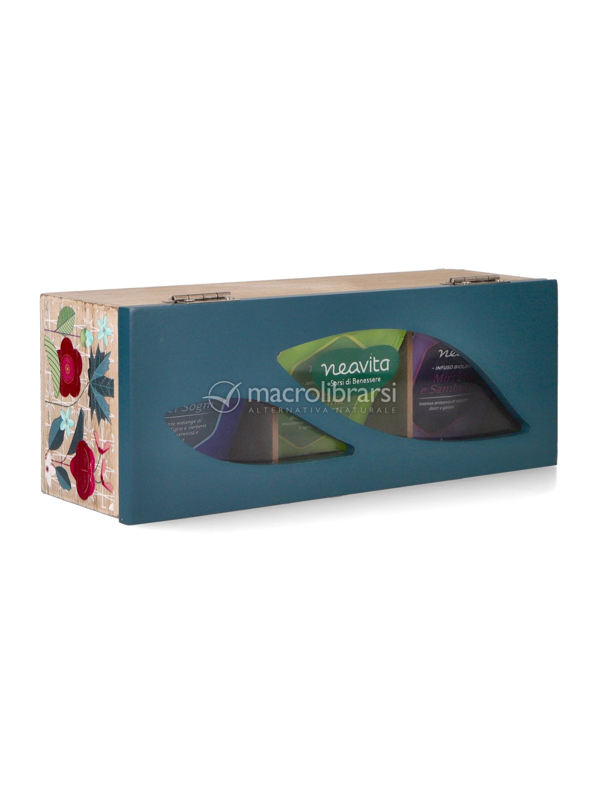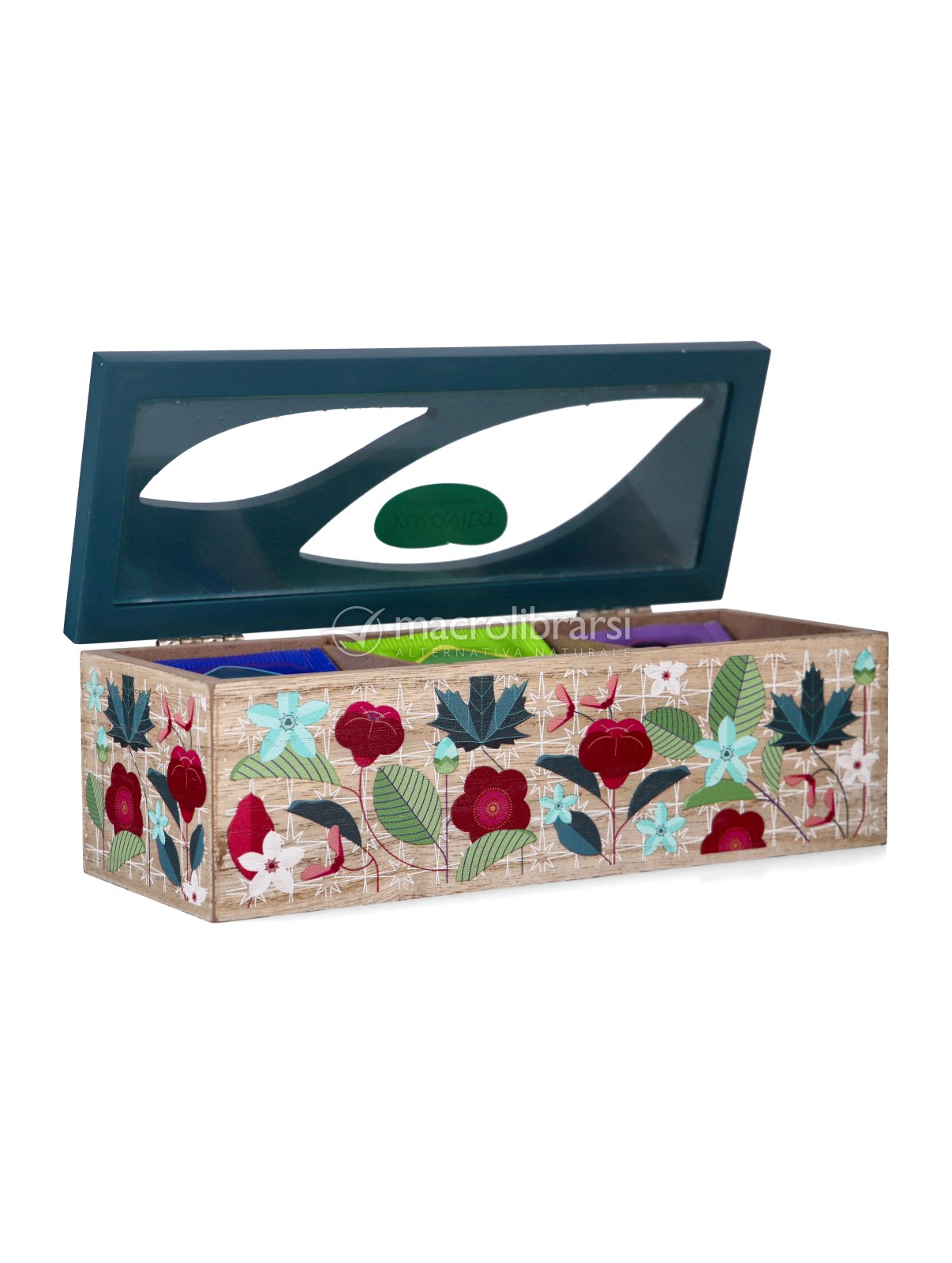 A rendere questo set ancora più speciale è la scatola in legno decorata, elegante e colorata, che dopo aver custodito le tue tisane può continuare ad accompagnarti nella vita quotidiana. Riutilizzala come porta trucchi, svuota tasche, portagioie, porta caramelle o per conservare altre bustine di tè: un oggetto bello, pratico e sostenibile, che porta un tocco di stile in ogni ambiente.
