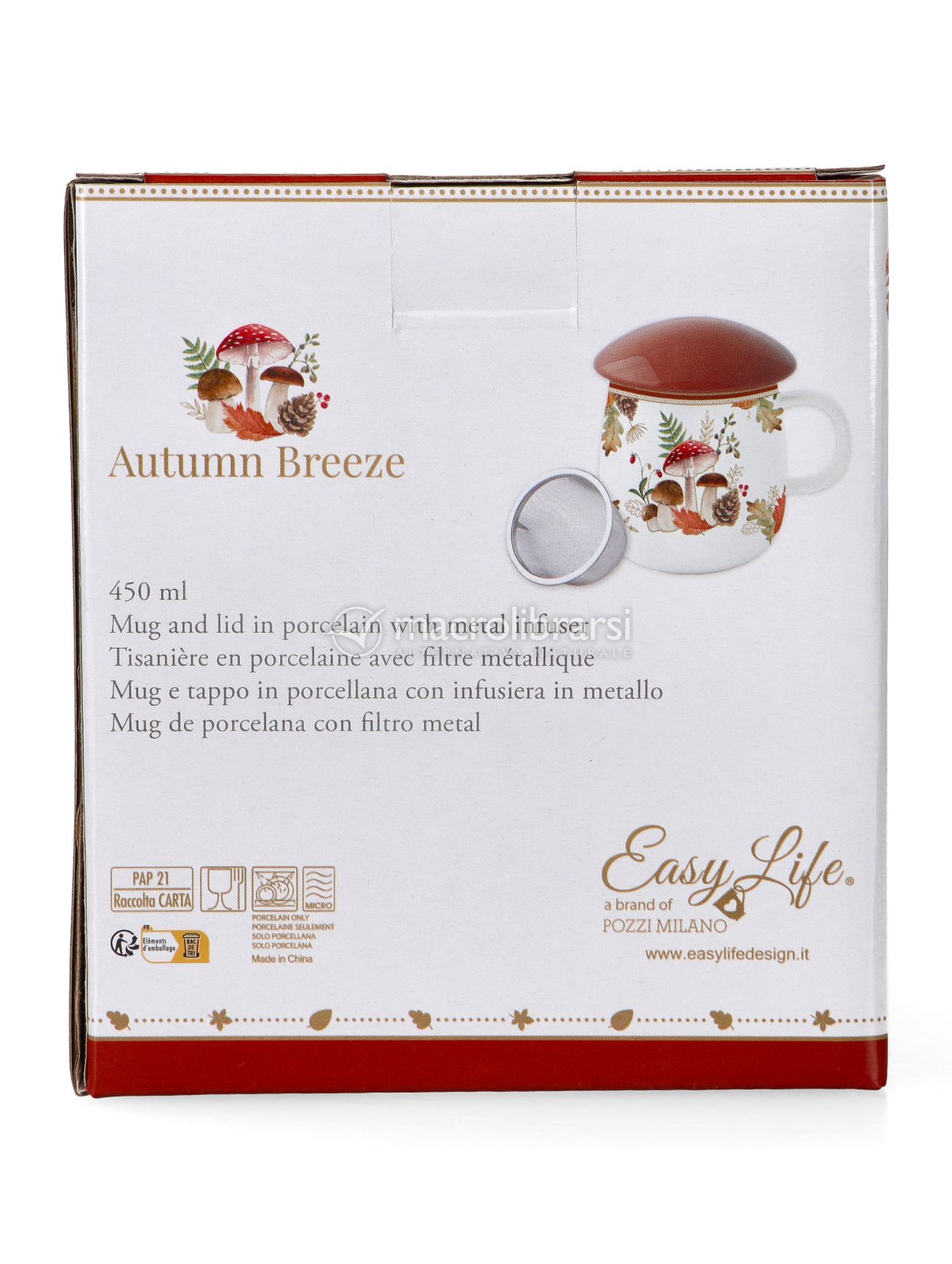 Autumn Breeze porta in cucina i colori più caldi della stagione… dorati raggi di sole, foglie rosse, piccoli funghetti e scoiattoli che raccontano pause senza fretta. La tisaniera “Funghetto” di Easylife è in porcellana, piacevole al tatto e alla vista… completa di filtro in acciaio per infusioni pulite e aromatiche, e di coperchio coordinato che trattiene calore e profumi.
